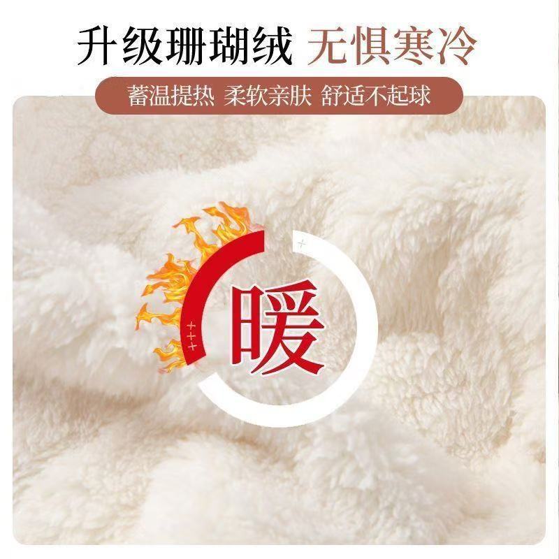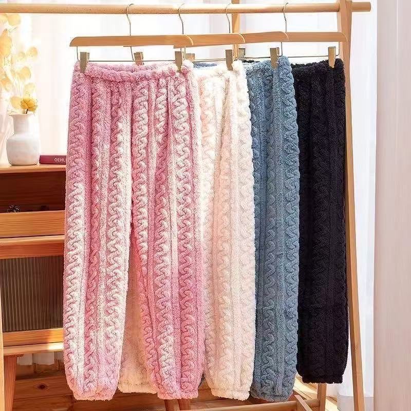 (59元2条,设满减拍2立减)珊瑚绒睡裤女加绒加厚保暖提花家居裤秋冬束脚宽松毛绒裤