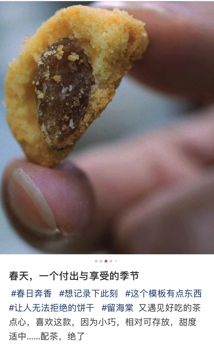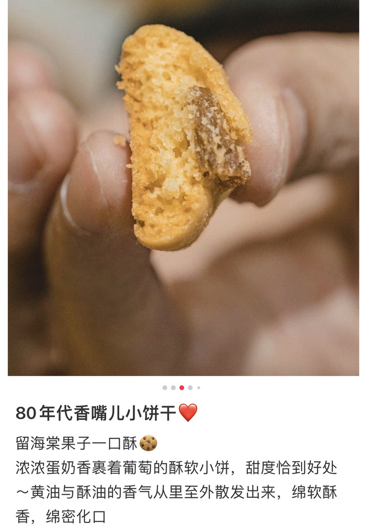 包装很是古朴,有魂穿民国时期内味了,打开就能闻到一口酥饱满的黄油鸡蛋香,是记忆中的质朴和醇厚。咬上一口,酥底温和酥软,里面的葡萄干带着柔软的嚼劲和淡淡的果甜,满足唇齿咀嚼欲望,酥而不碎,甜而不腻,香且绵密,小小粒,一口一个,是会上头的!约上三五好友,彻上一壶清茶,秋日午后温暖的下午茶真是太美好了!