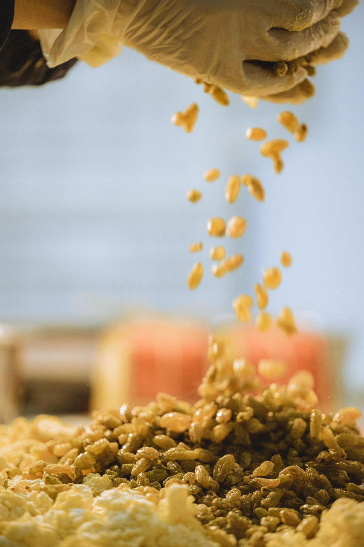 留海棠,一个保留着几十年手工制作精髓的品牌。“昌州古时味,年年留海棠”,荣昌古称“昌州”,又称“荣城”,享有海棠香国的美誉,“留海棠”得名坊间雅士赞语,遵循几百年流传下来的传统,做荣昌一派的土特名点。得益于数次移民迁徙,历史沉淀、文化碰撞、口味融合下,荣昌有了独树一帜的渝系客家菜,原汁原味浓郁可口的古老客家风味与川渝调和五味的神魂相融,创造出独树一帜的风味。这也是传统小吃会显得珍贵的原因,并没有什么稀有食材、缭乱技法,更多的是寒来暑往师傅日复一日掌心纹路里留下的传承和匠心。
