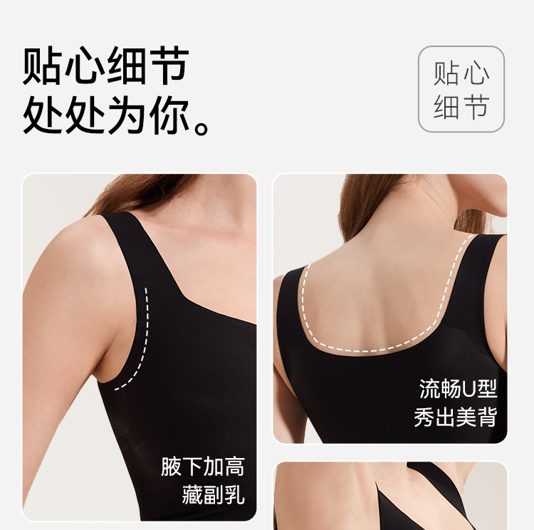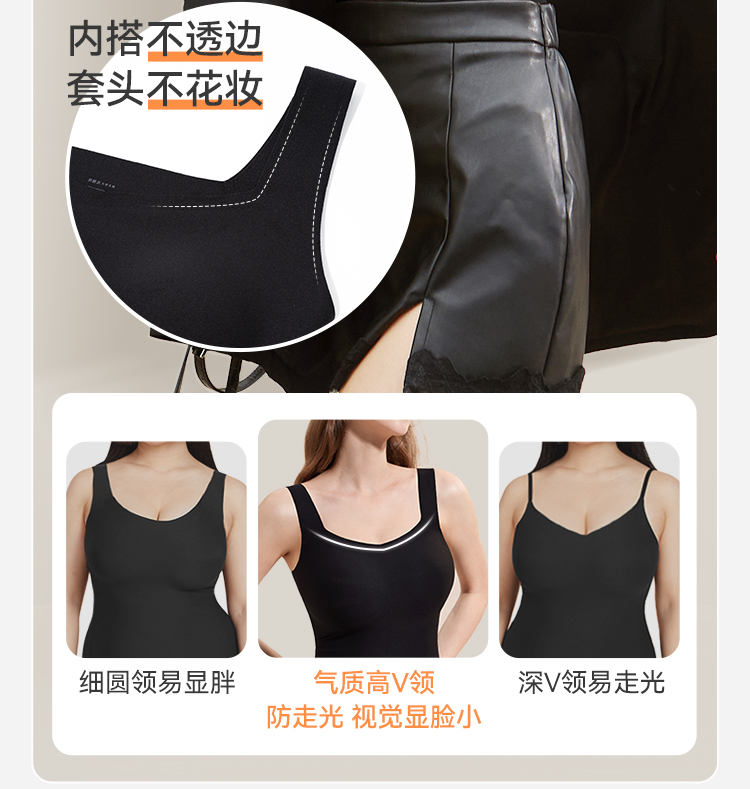 【免穿内衣 舒适显瘦】奶糖派 零感肌底均码带胸垫无痕内搭背心(65-85底围 C-G杯) 商品图4