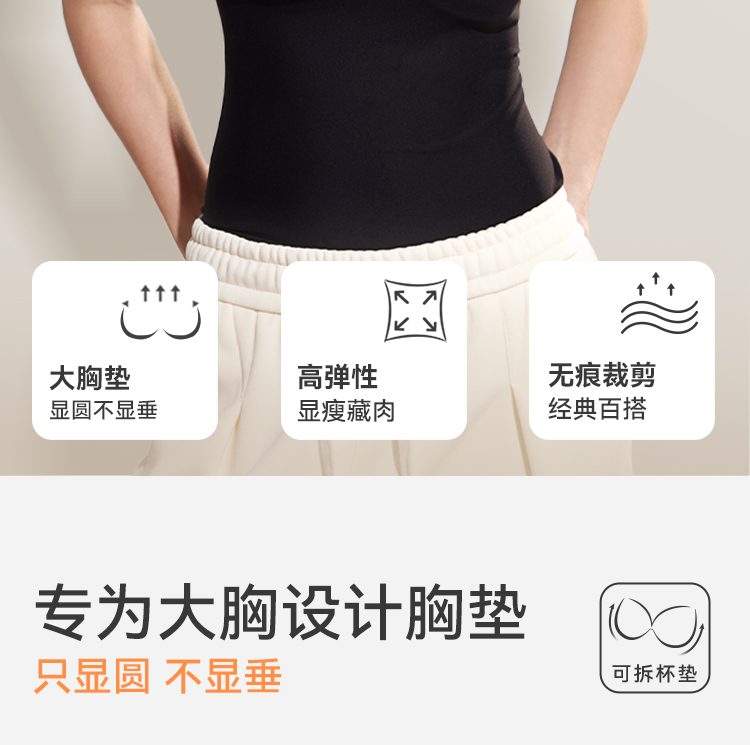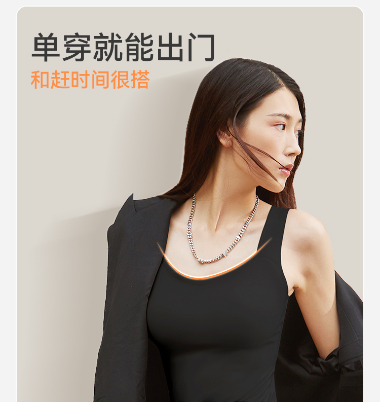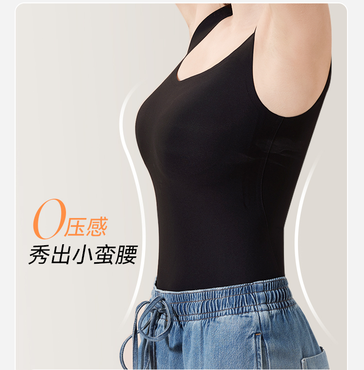 【免穿内衣 舒适显瘦】奶糖派 零感肌底均码带胸垫无痕内搭背心(65-85底围 C-G杯) 商品图5