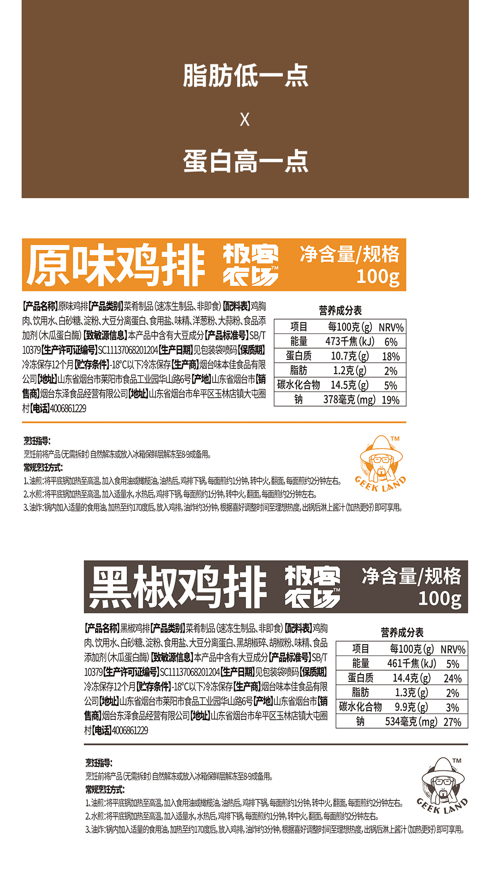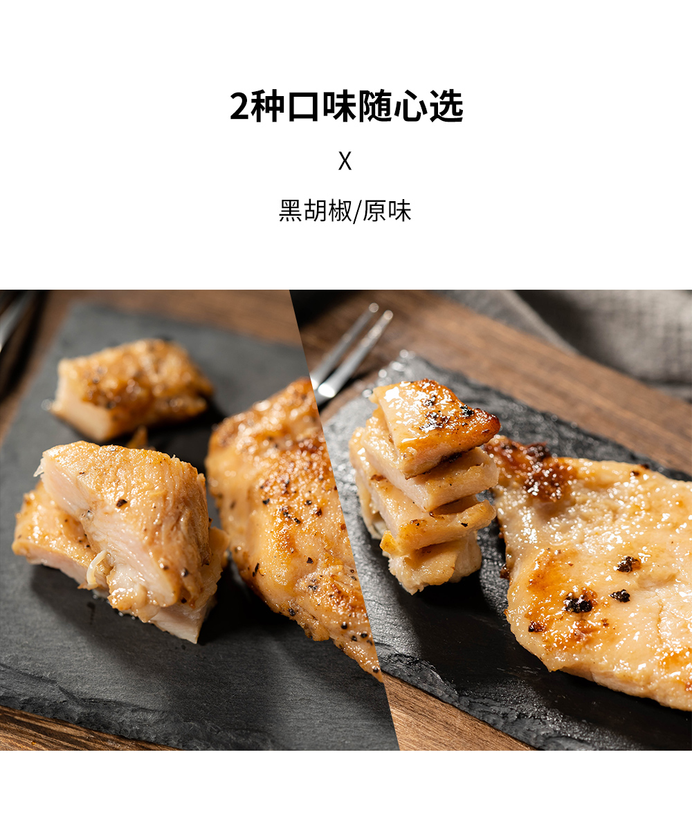 【配料表】鸡胸肉、饮用水、白砂糖、淀粉、食用盐、大豆分离蛋白、黑胡椒碎、胡椒粉、味精、食品添加剂(木瓜蛋白酶)