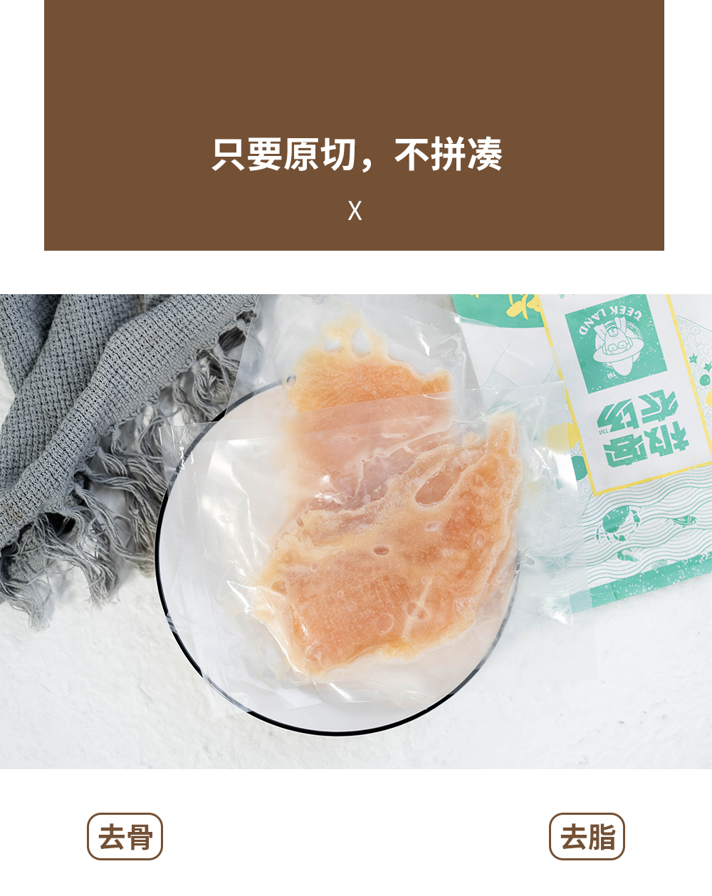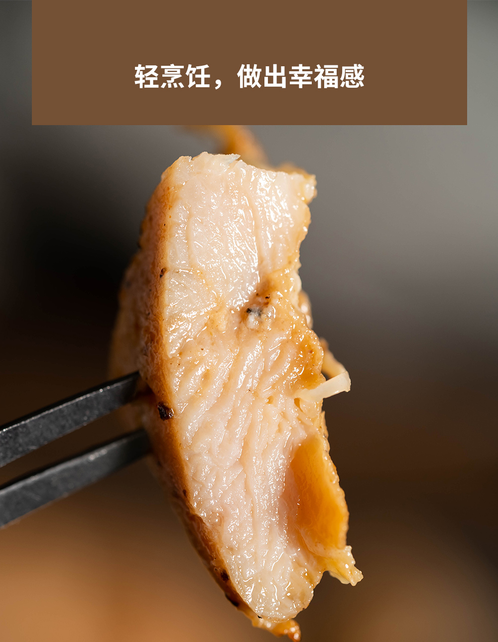 【配料表】鸡胸肉、饮用水、白砂糖、淀粉、大豆分离蛋白、食用盐、味精、洋葱粉、大蒜粉、食品添加剂(木瓜蛋白酶)