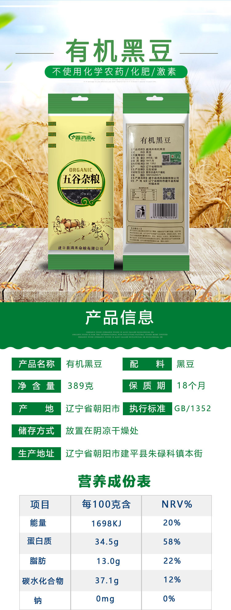 彩虹雨 有机杂粮有机黑豆389g 满百包邮