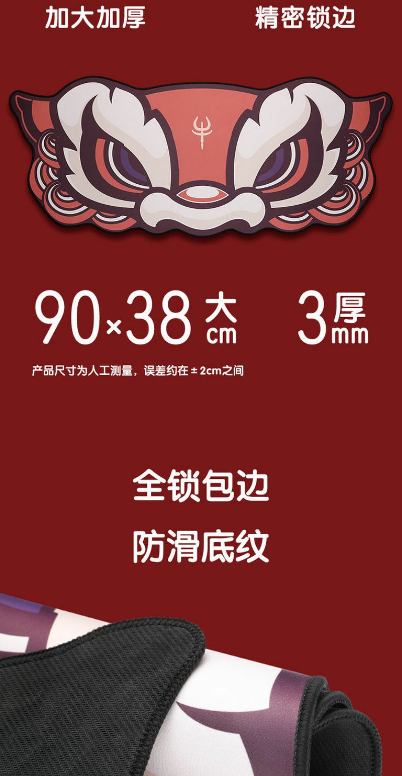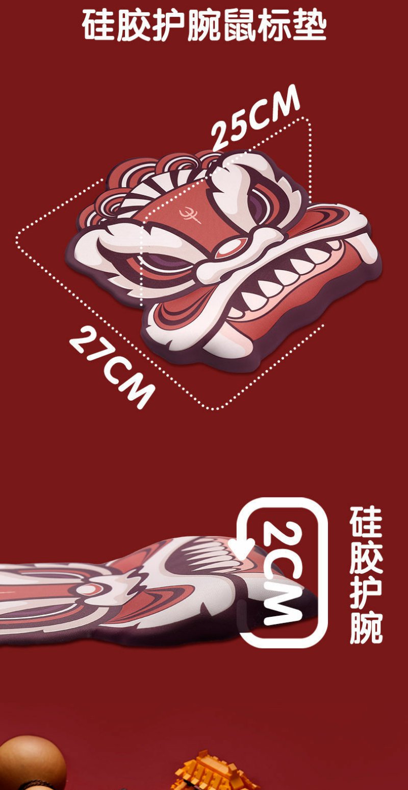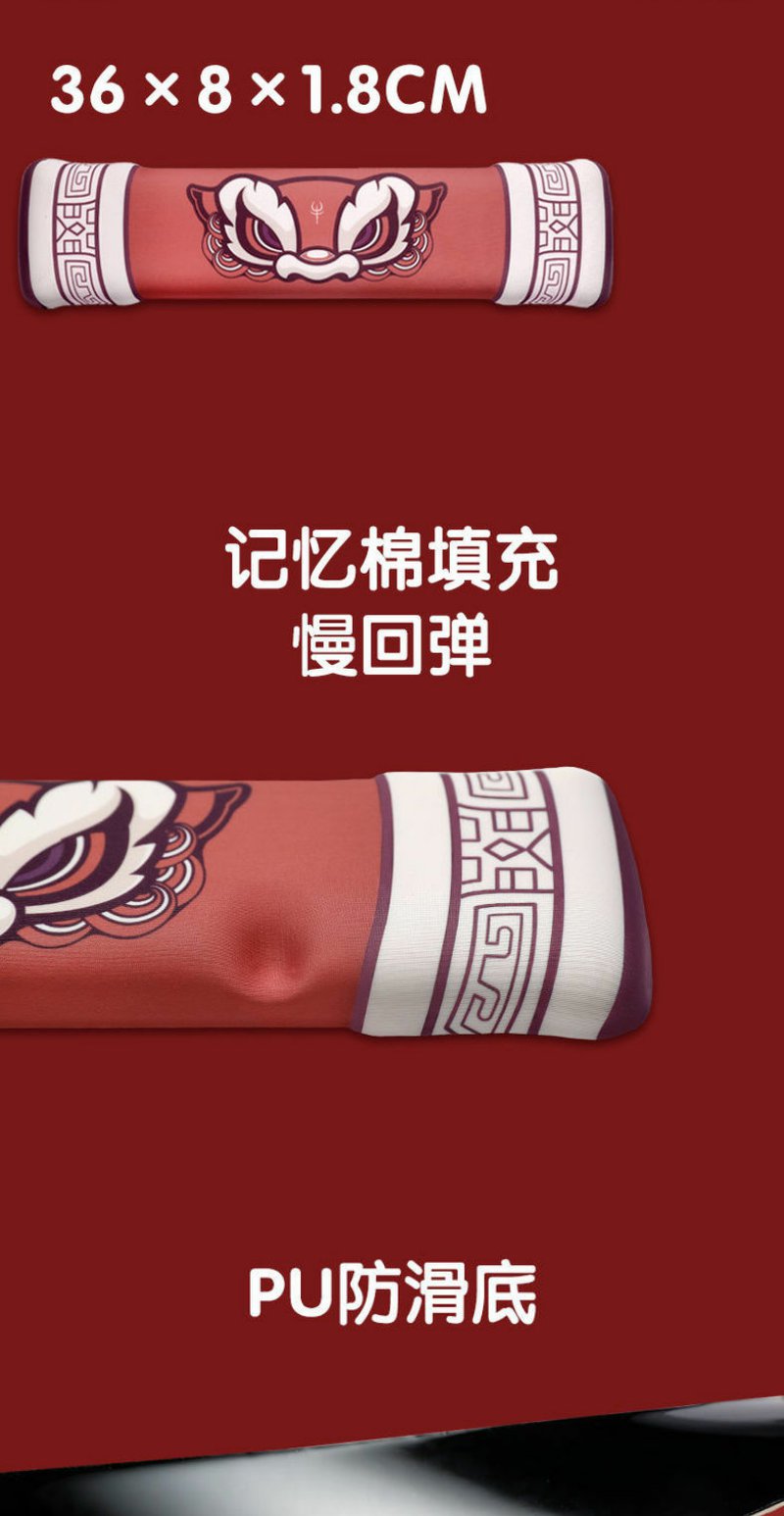 小熊堂国风醒狮记忆棉键盘手托慢回弹护腕鼠标垫超大腕托手腕垫潮