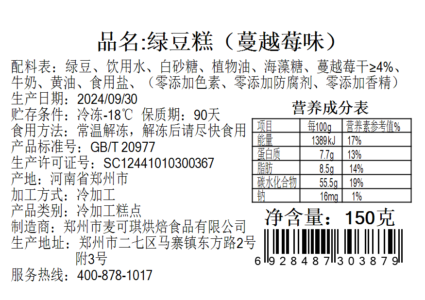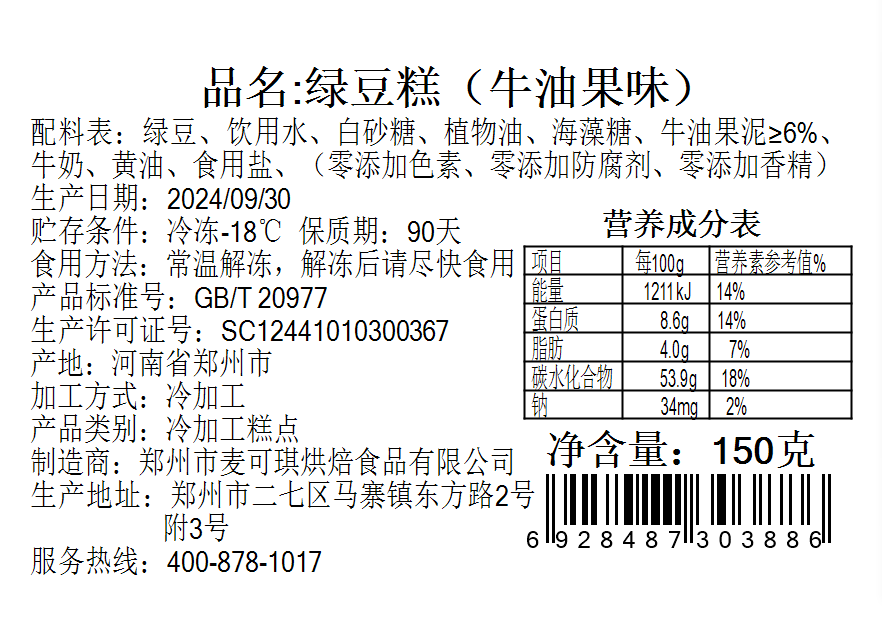 品名:双拼绿豆糕规格: 包装方式:泡沫箱+干冰+冰块+保温袋 快递:中通 运费模板:甘肃、广西、宁夏、贵州、海南、内蒙 +5元;新疆,西藏、青海、港澳台不发货 发货时效:48-72h 发货地/产地:河南郑州 保质期:冷冻45天 生产日期:发货前48小时内日期 销售售卖期:长期 周六周天、节假日除外,早上十点之前的订单是48小时发货 ,到货时间约为2-5天,请您耐心等待 。 |
