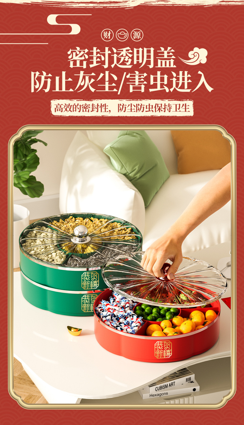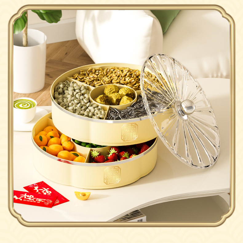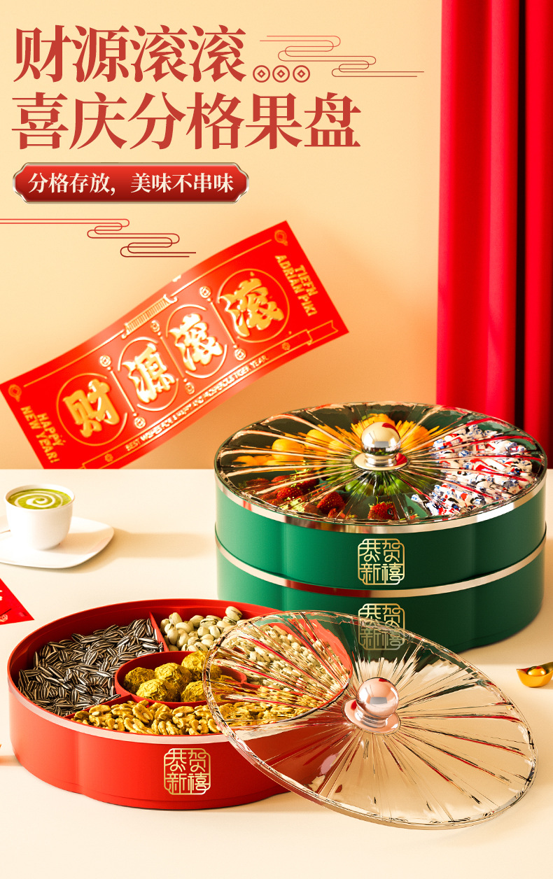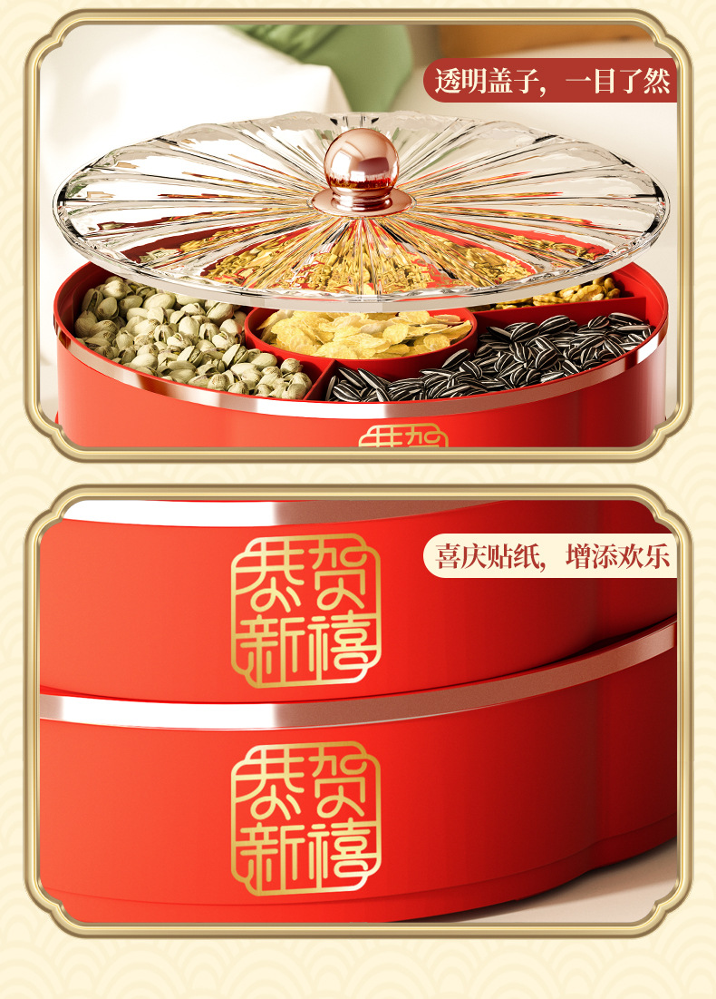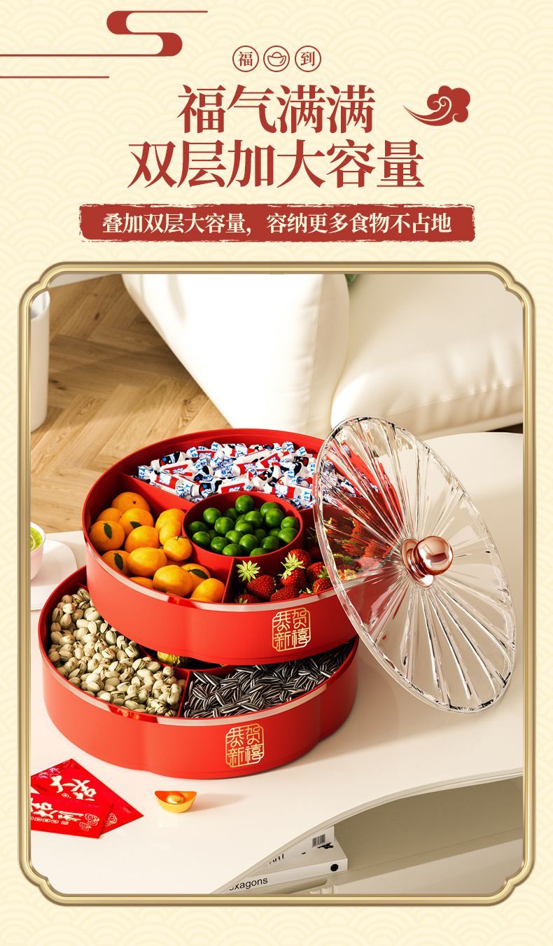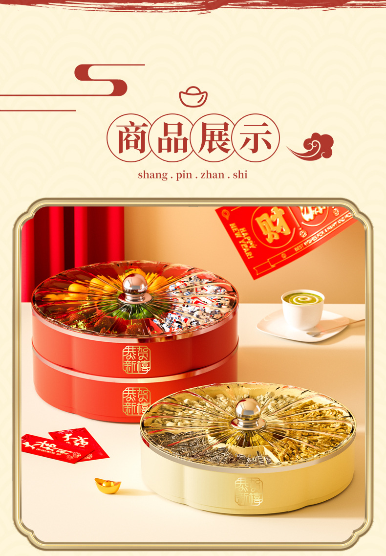 【新春必备!轻奢多层干果盘】年年有余,事事顺遂。新年G档轻奢干果盘,多层洒满吉祥如意。家用客厅茶几、收纳糖果坚果,便携开盖全方位。入宅、新婚、过年家庭必备!HLY