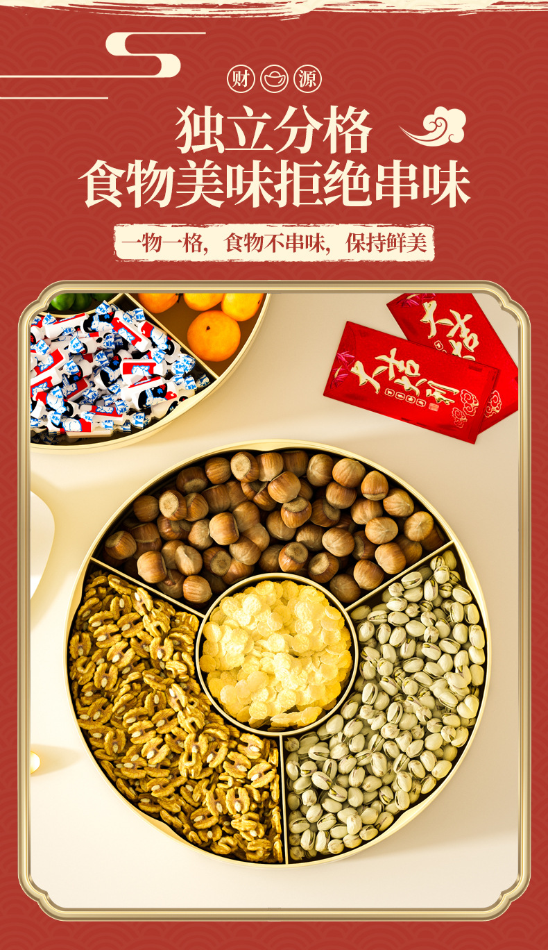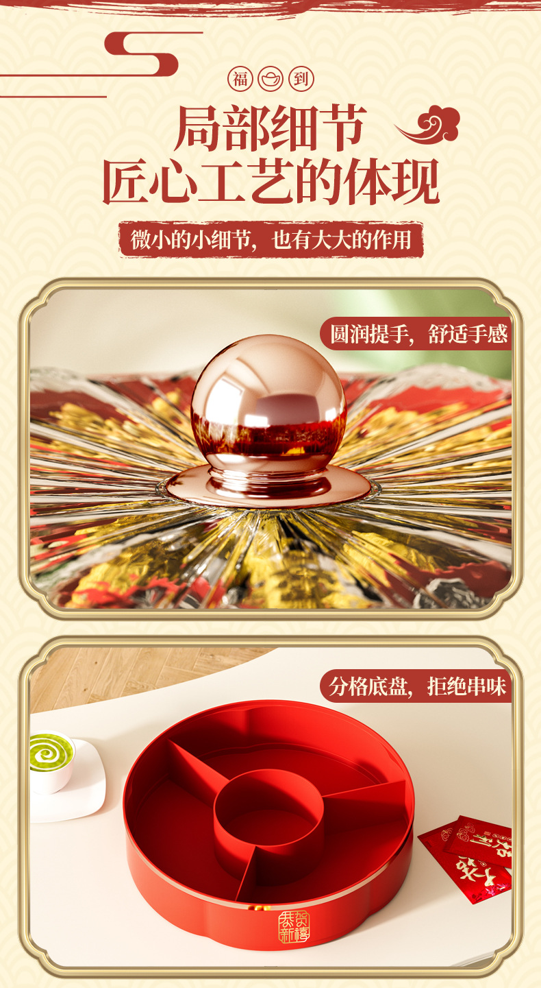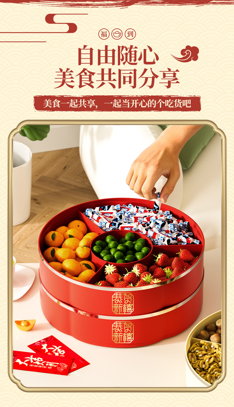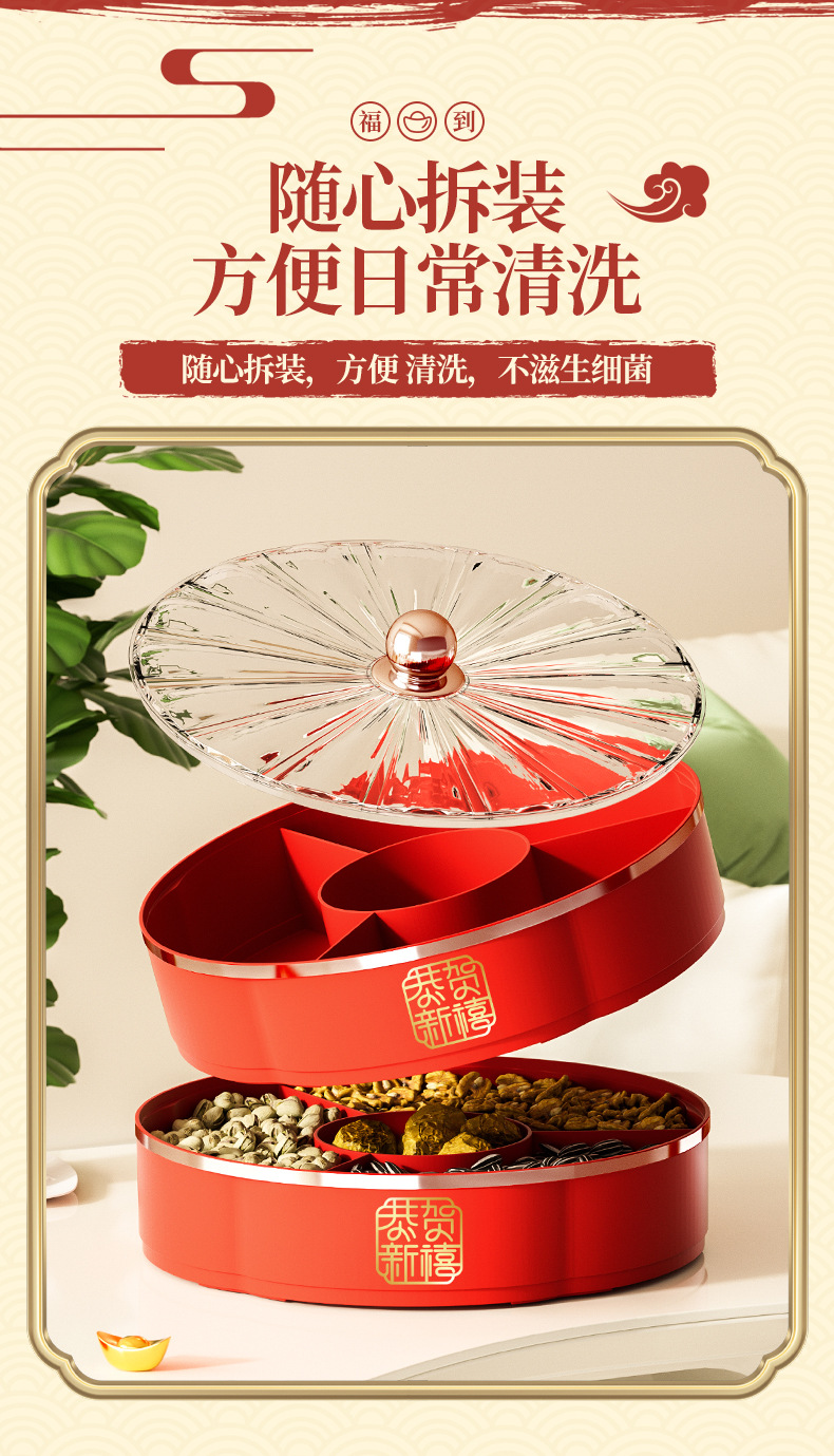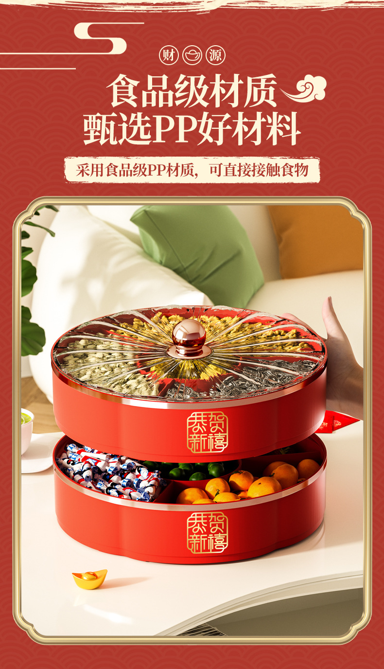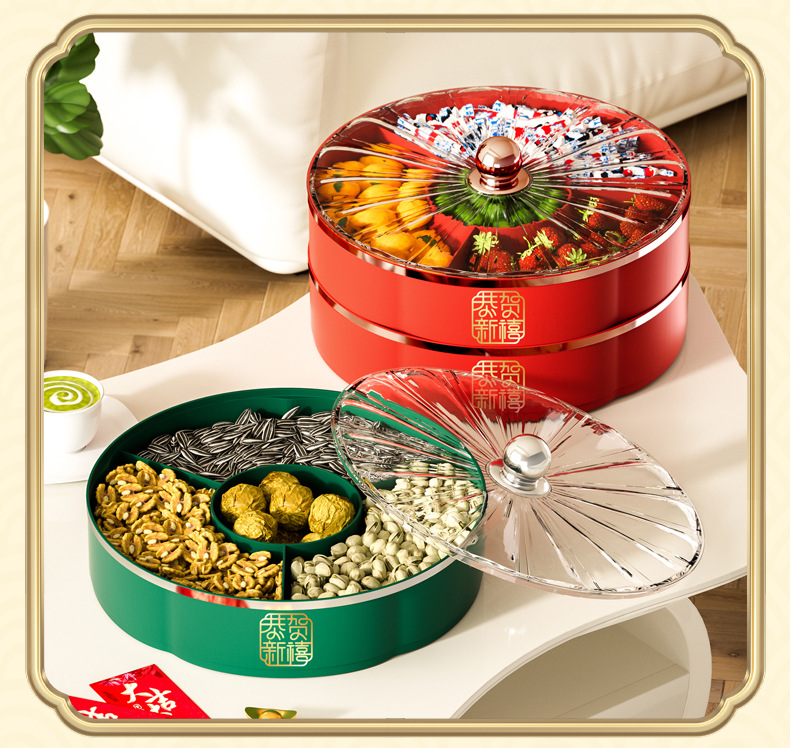 【新春必备!轻奢多层干果盘】年年有余,事事顺遂。新年G档轻奢干果盘,多层洒满吉祥如意。家用客厅茶几、收纳糖果坚果,便携开盖全方位。入宅、新婚、过年家庭必备!HLY