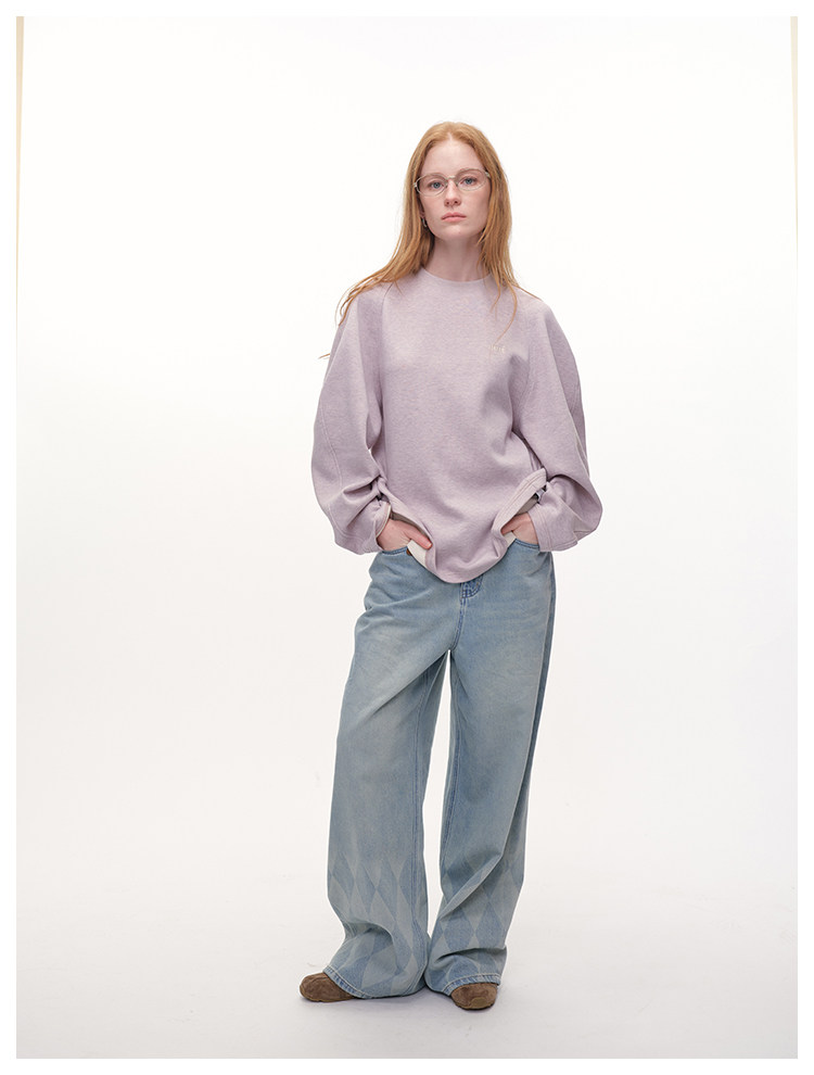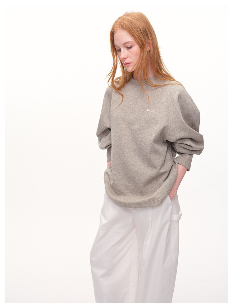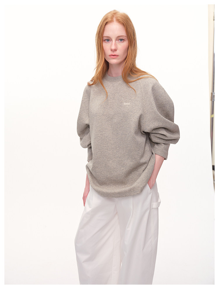 UMILAB|轻氧日记*建筑感构型 简约混色花纱廓形插肩logo卫衣T788