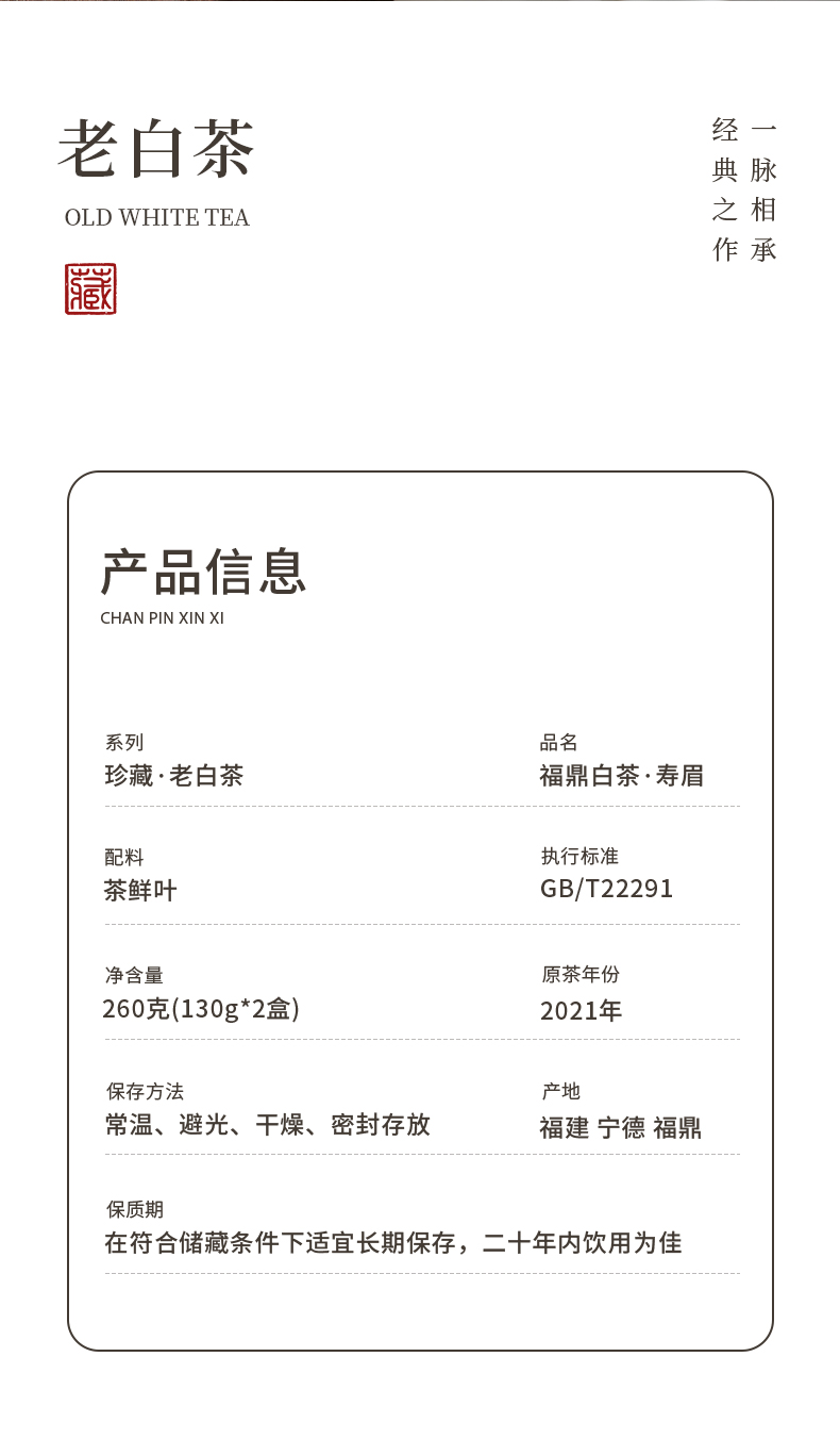 珍藏老白茶·寿眉2021·礼盒装260g(130g*2)