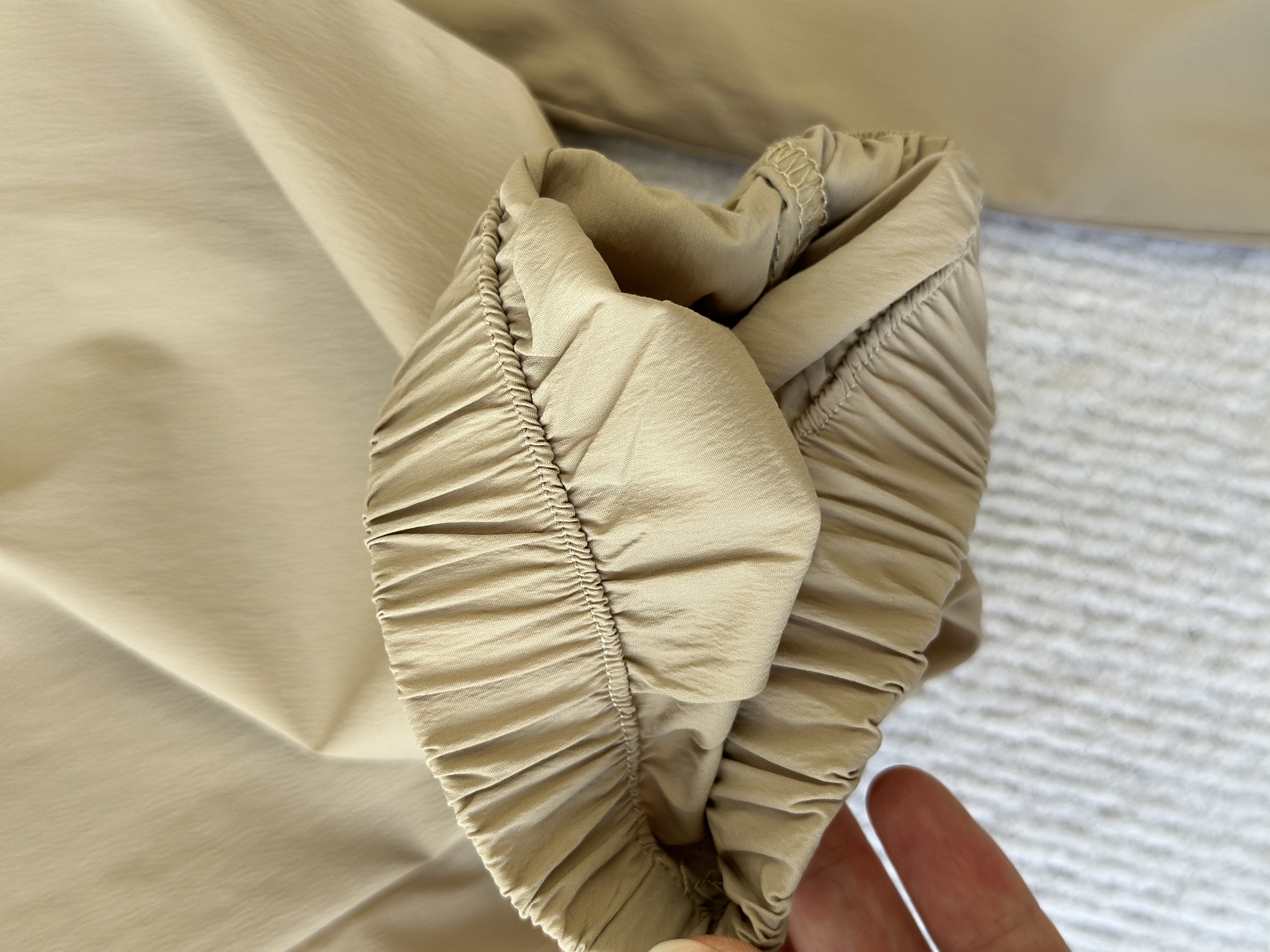 法式时尚休闲抽绳束脚裤,考究剪裁兼顾法式时尚美学,修饰身形舒适休闲,轻松打造利落时尚造型,选用品排客供的w-r防泼水面料,轻松应对小雨天气,还有uvc防晒功能,能够很好的保护肌肤不受阳光侵害,腰部松紧抽绳可调节大小,穿着更舒适,两侧口袋既美观又便于置物,具体面料成份是93锦纶7氨纶混纺的,柔韧又轻盈细腻。夏天穿着很舒适;