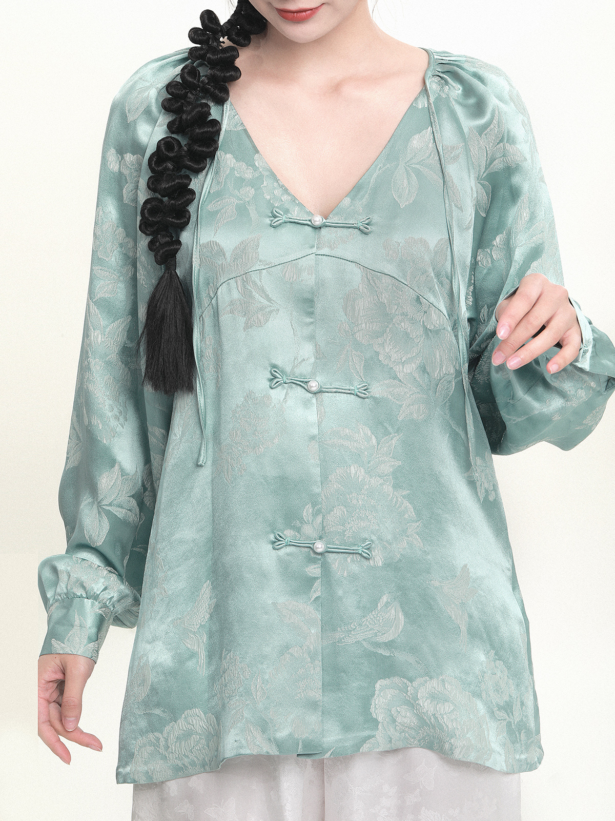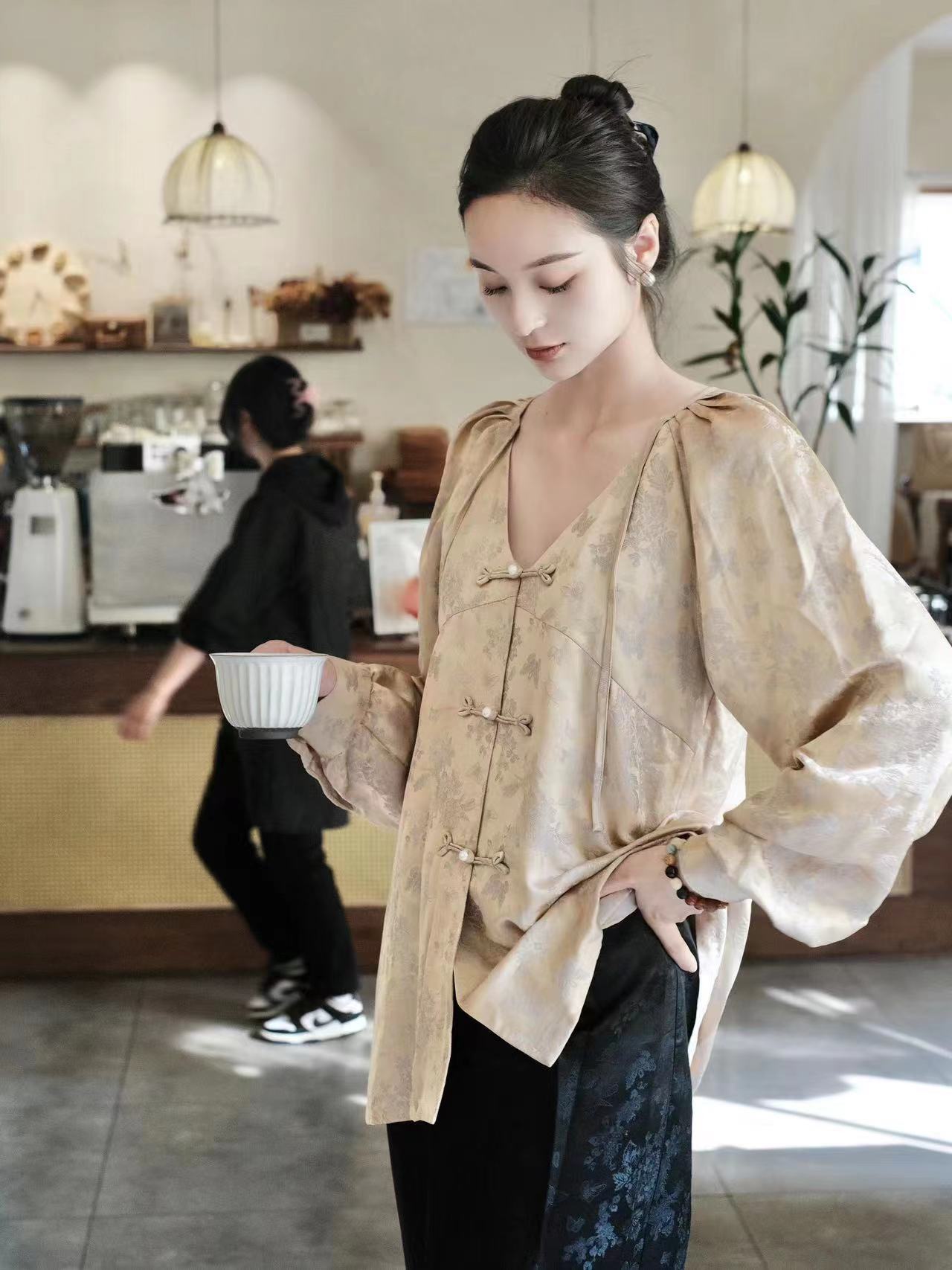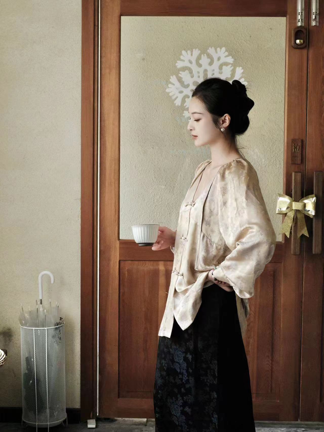 盛唐牡丹 |真丝冠乐绉女上衣-香槟金
