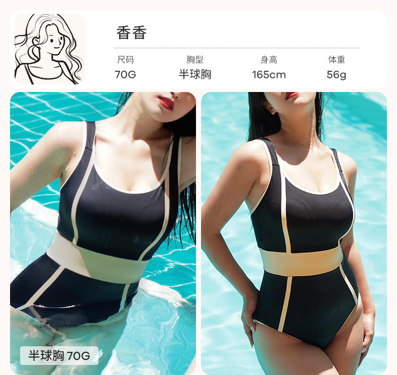 [山茶方领]连体泳衣夏季度假沙滩泳装女款