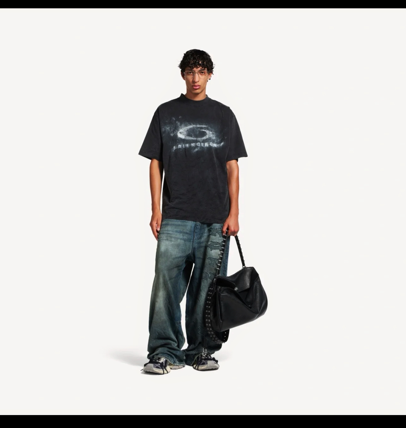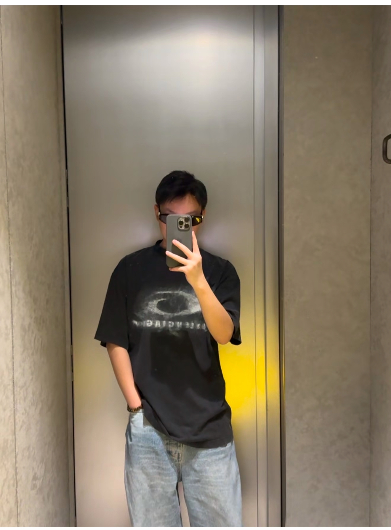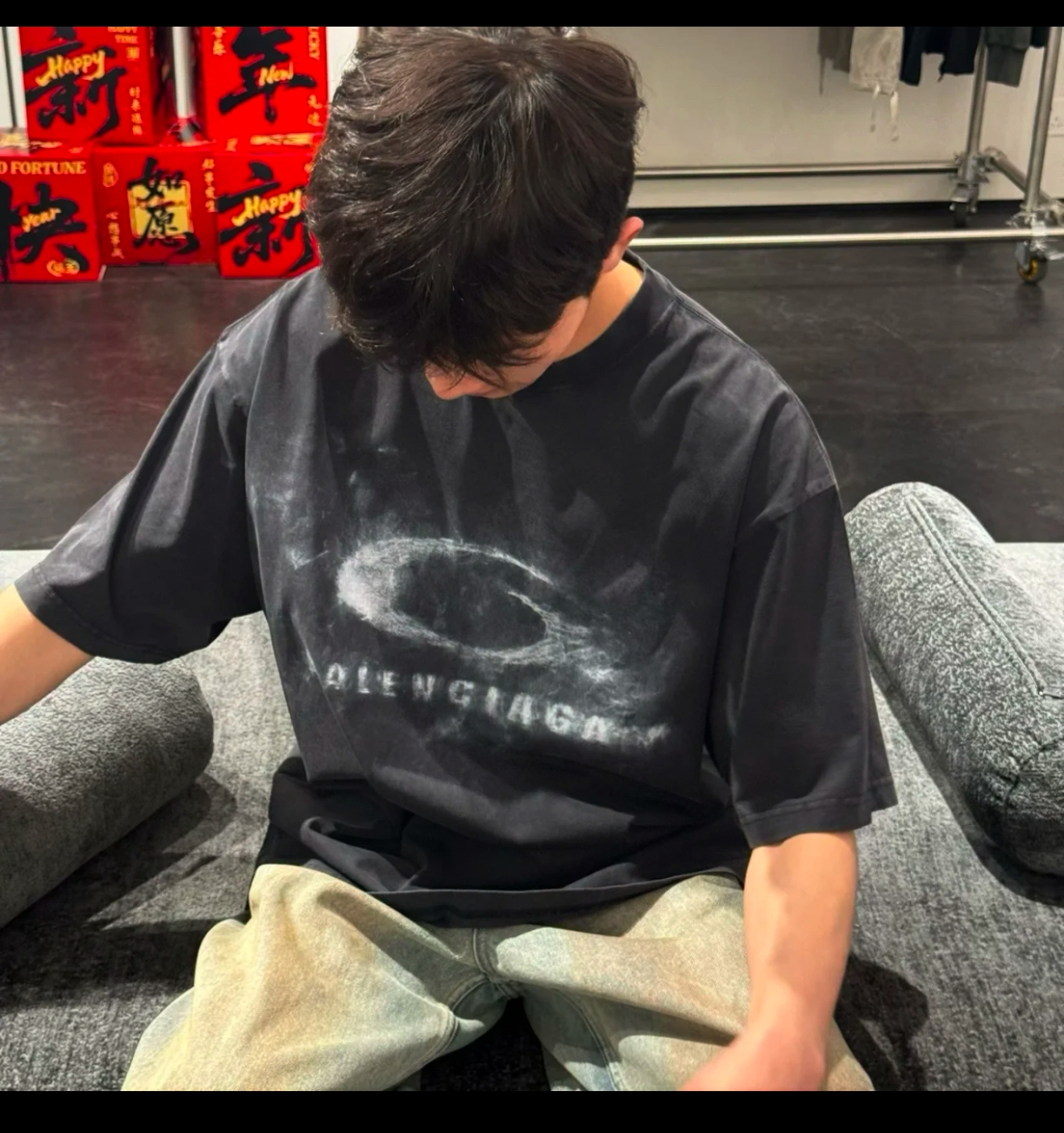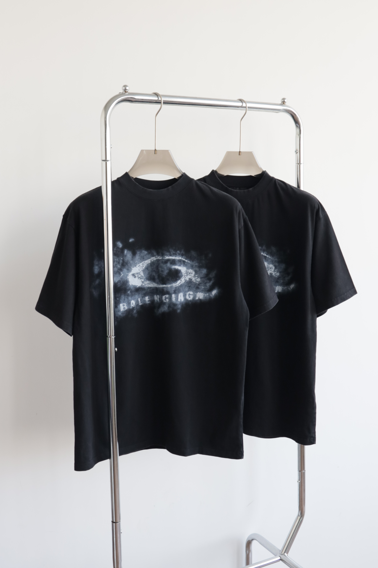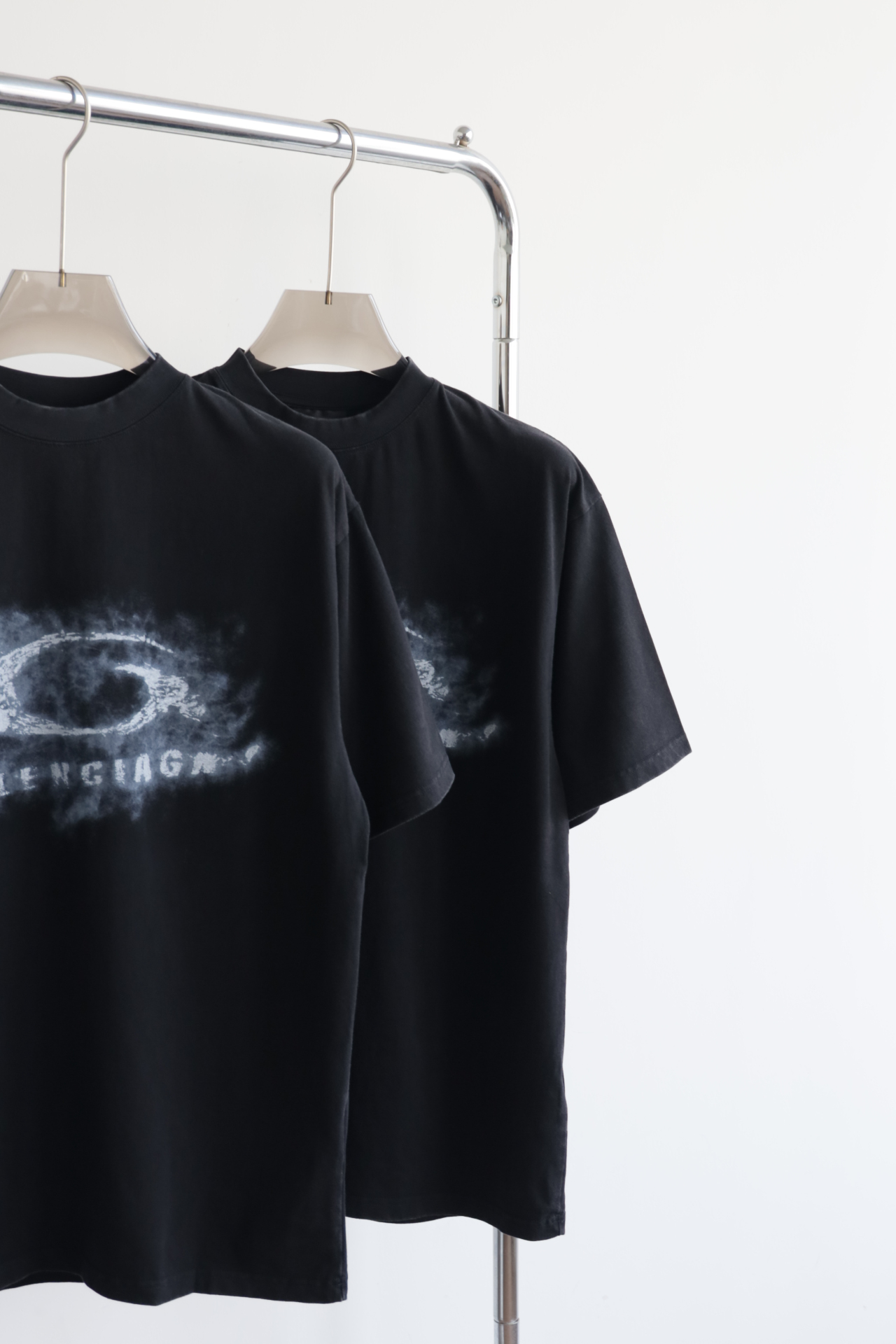 26春夏烟雾系列短袖,炭黑色纯棉材质,260克水洗做旧炒雪花工艺,复古感满满。