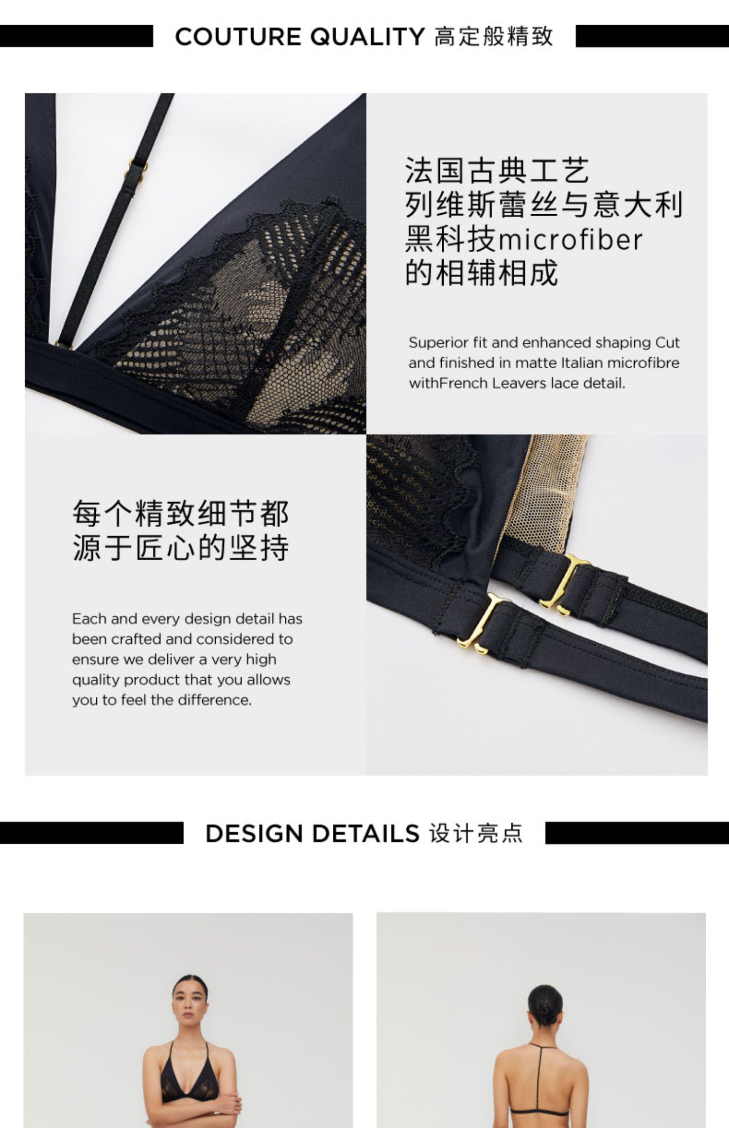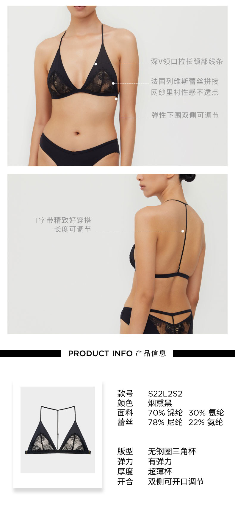 LOAM|绅士 Triangle 美背蕾丝三角杯无钢圈 [ 烟熏黑 ]