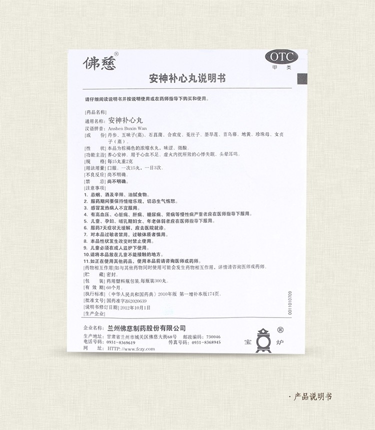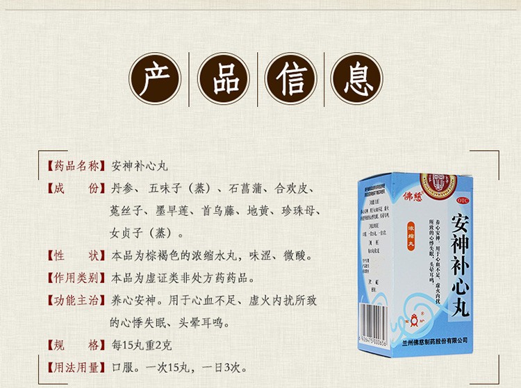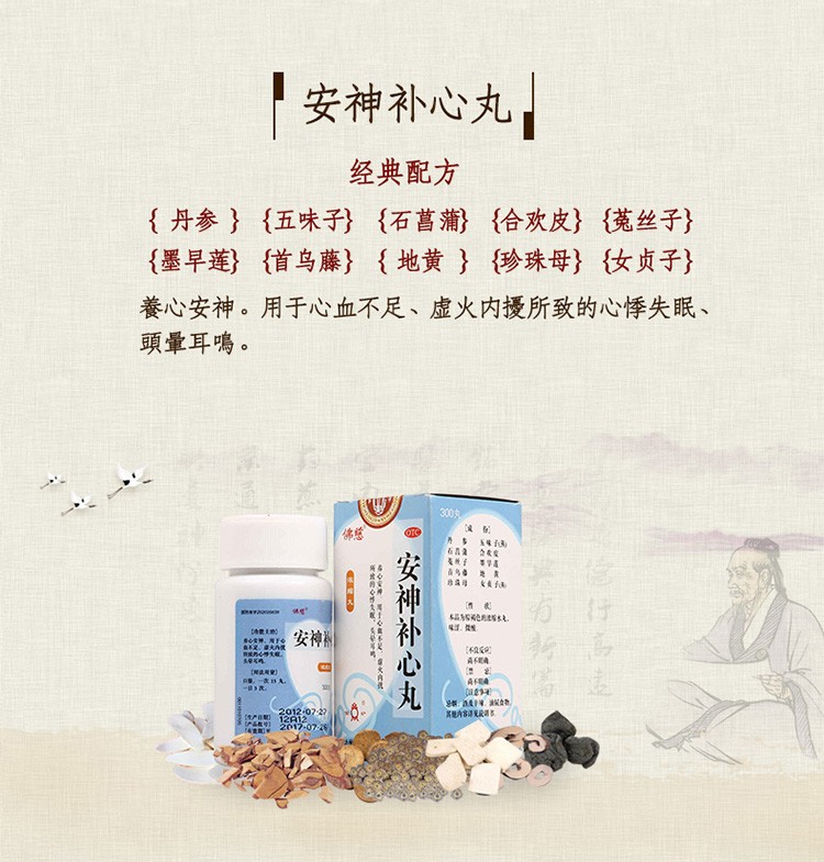 佛慈 安神补心丸 浓缩丸失眠心血不足 心悸300丸多梦安眠头晕耳鸣
