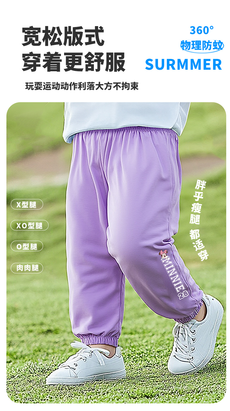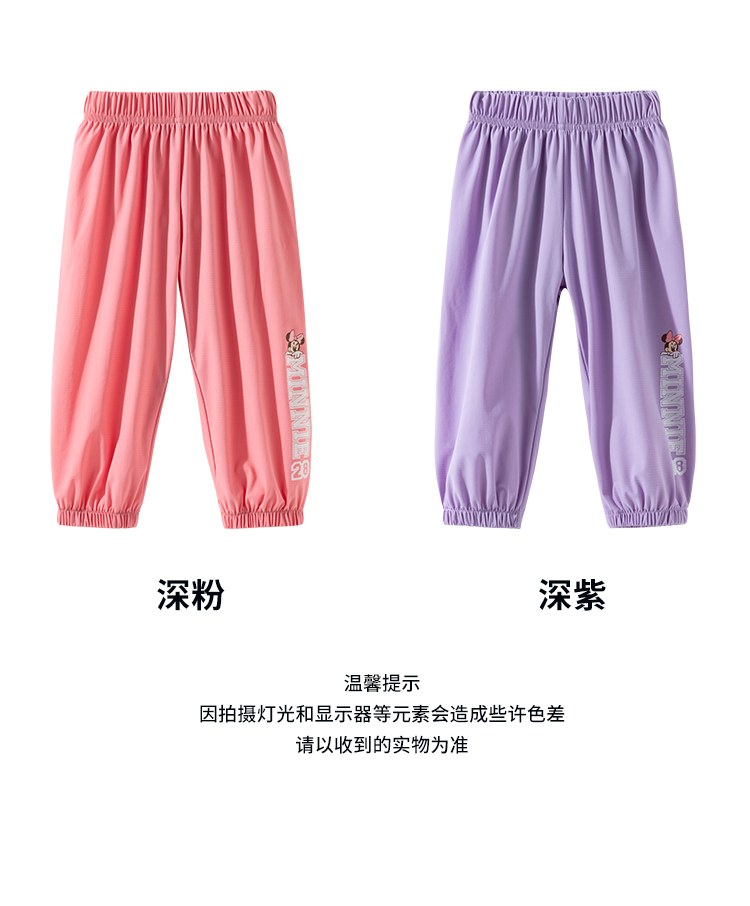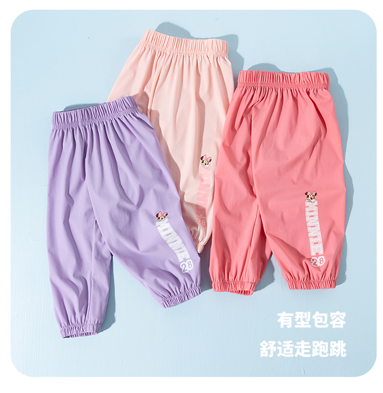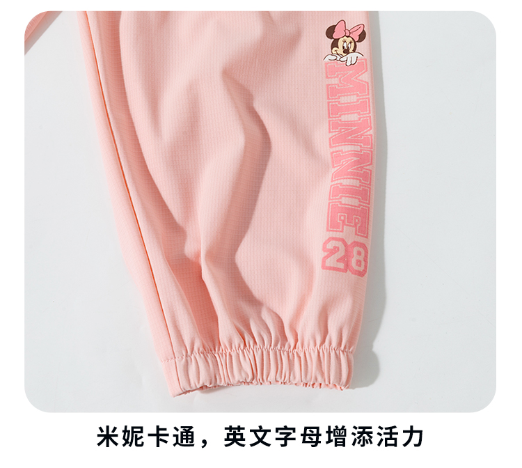 迪士尼2025春夏季新款女童米妮印花防蚊裤宽松透气速干学生裤运动裤闲裤ZD2EK007*
