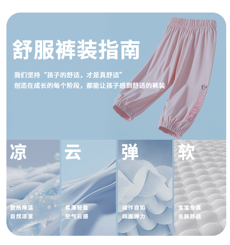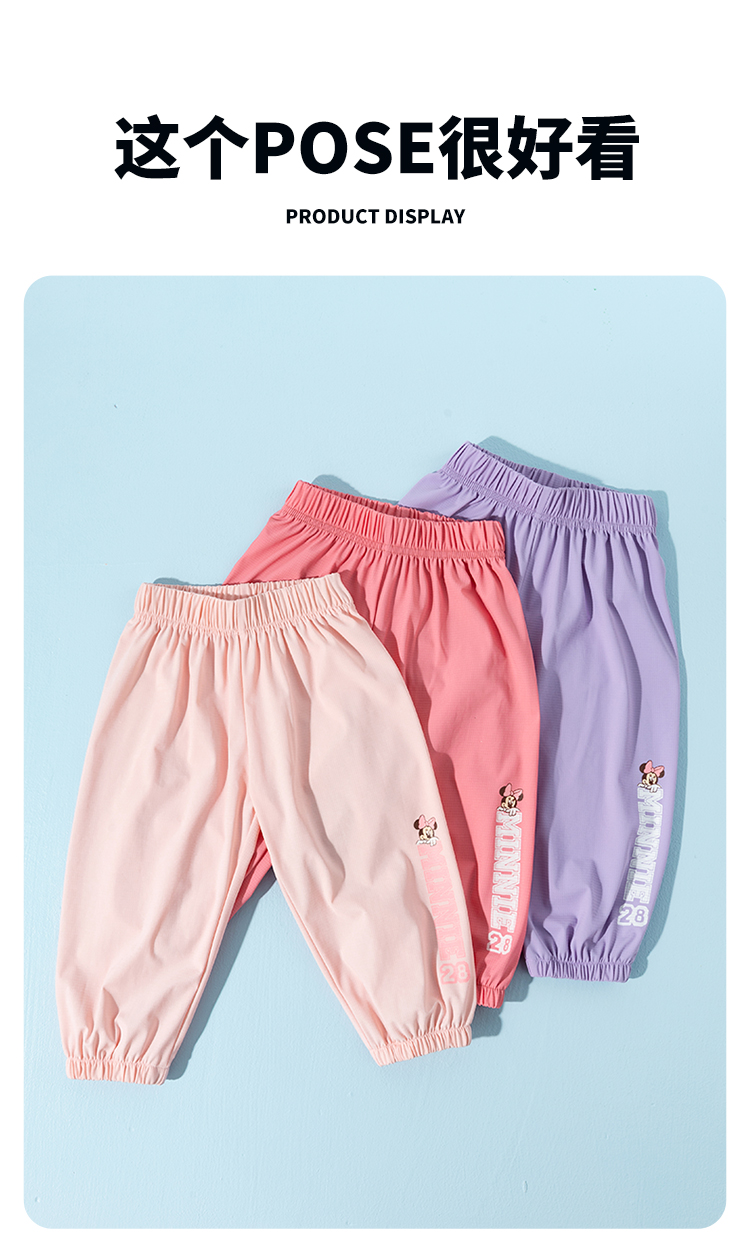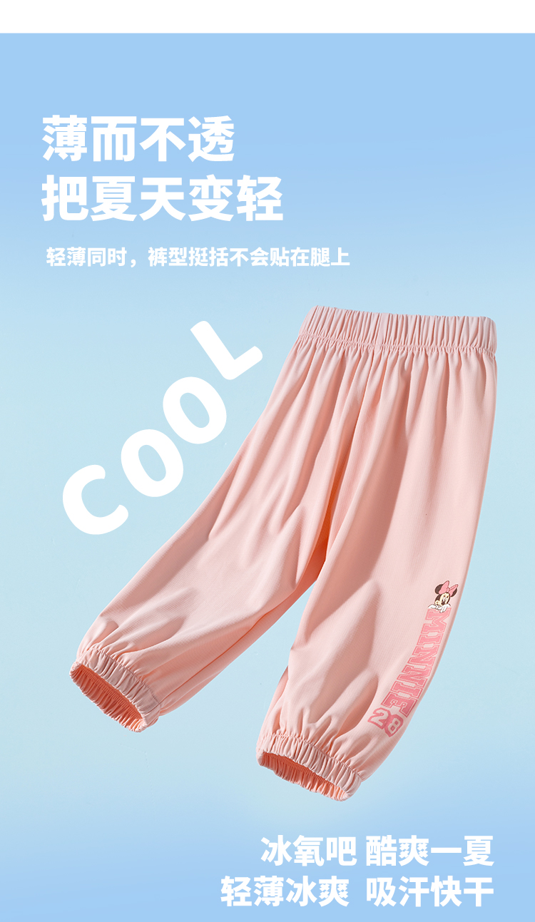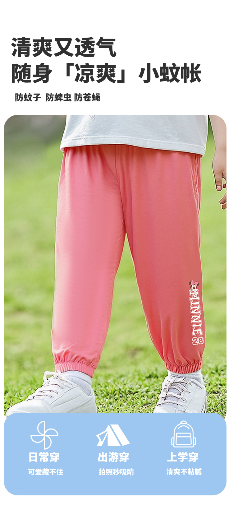 迪士尼2025春夏季新款女童米妮印花防蚊裤宽松透气速干学生裤运动裤闲裤ZD2EK007*