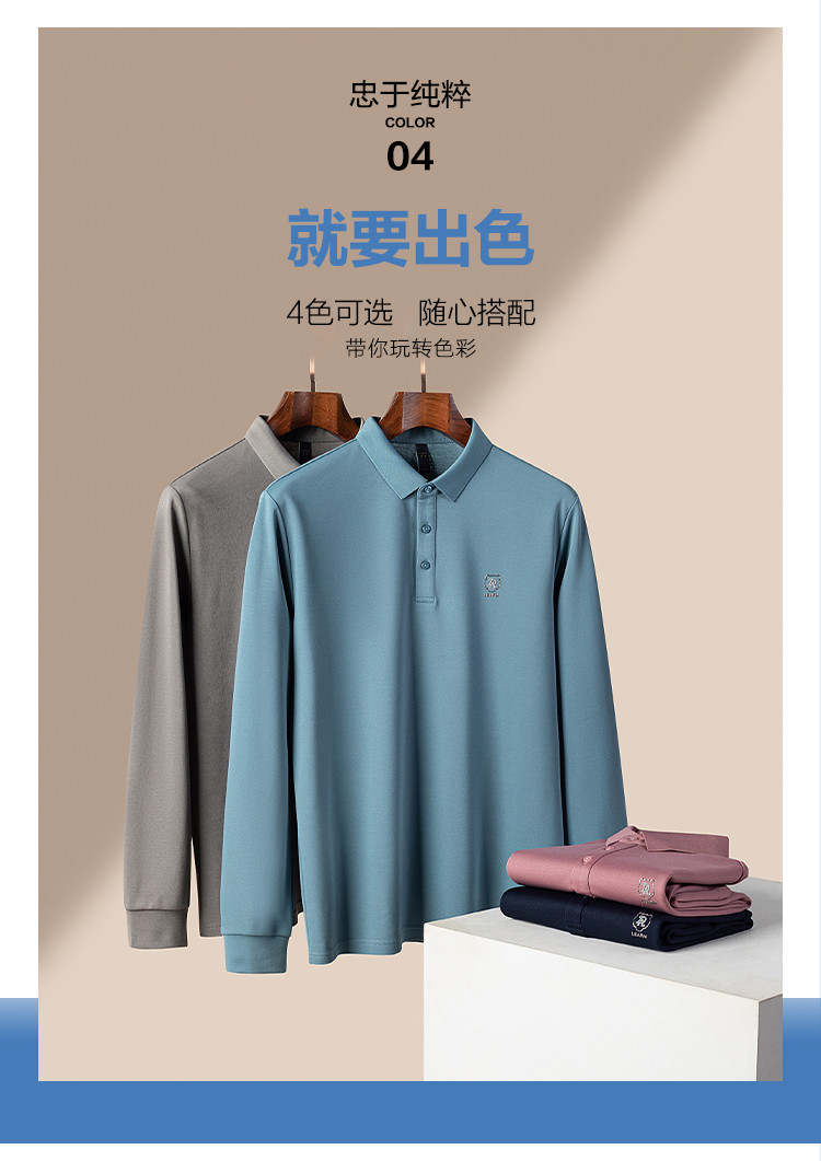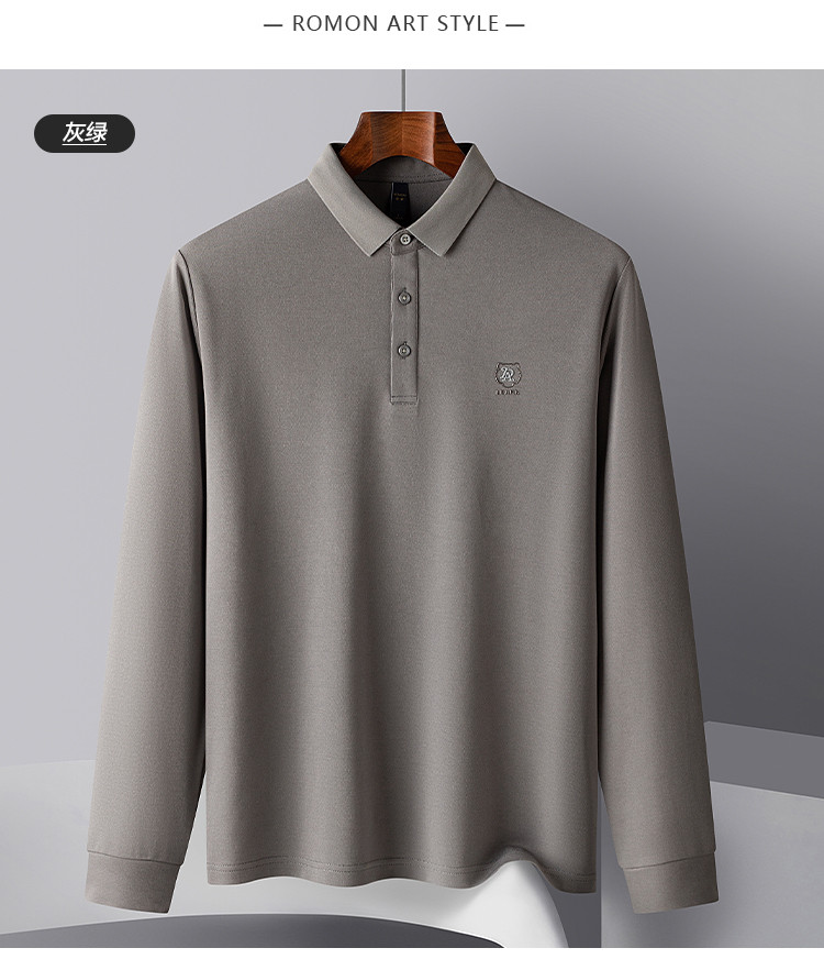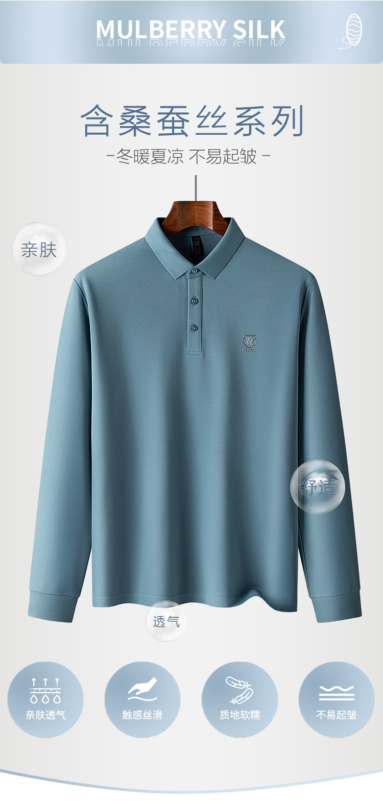 【双面含桑蚕丝】罗蒙春秋男士商务polo衫男长袖t恤男春秋男士polo衫