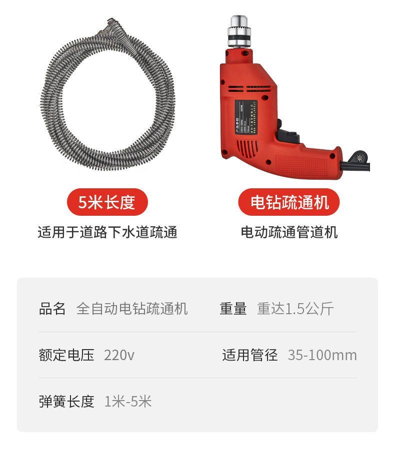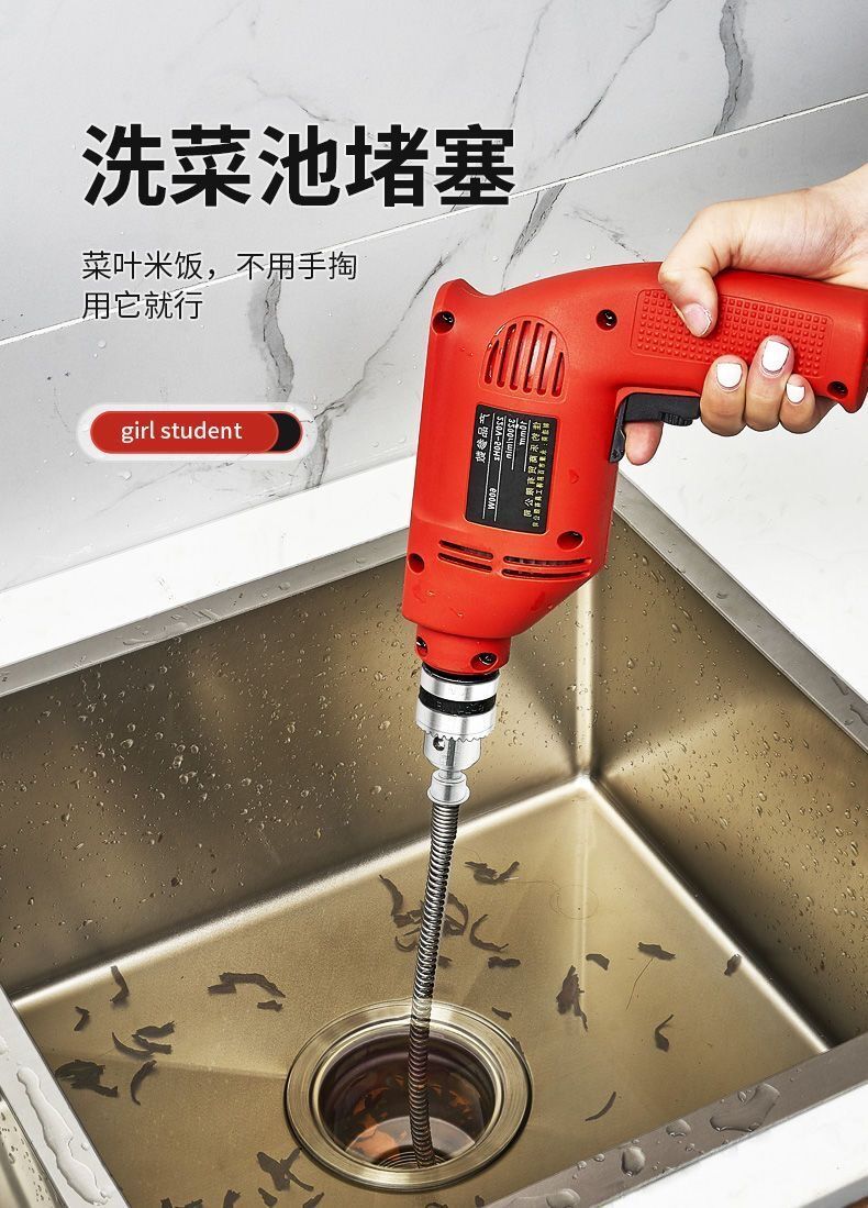 厨房下水道疏通神器专用工具电动管道一炮通厕所马桶疏通弹簧