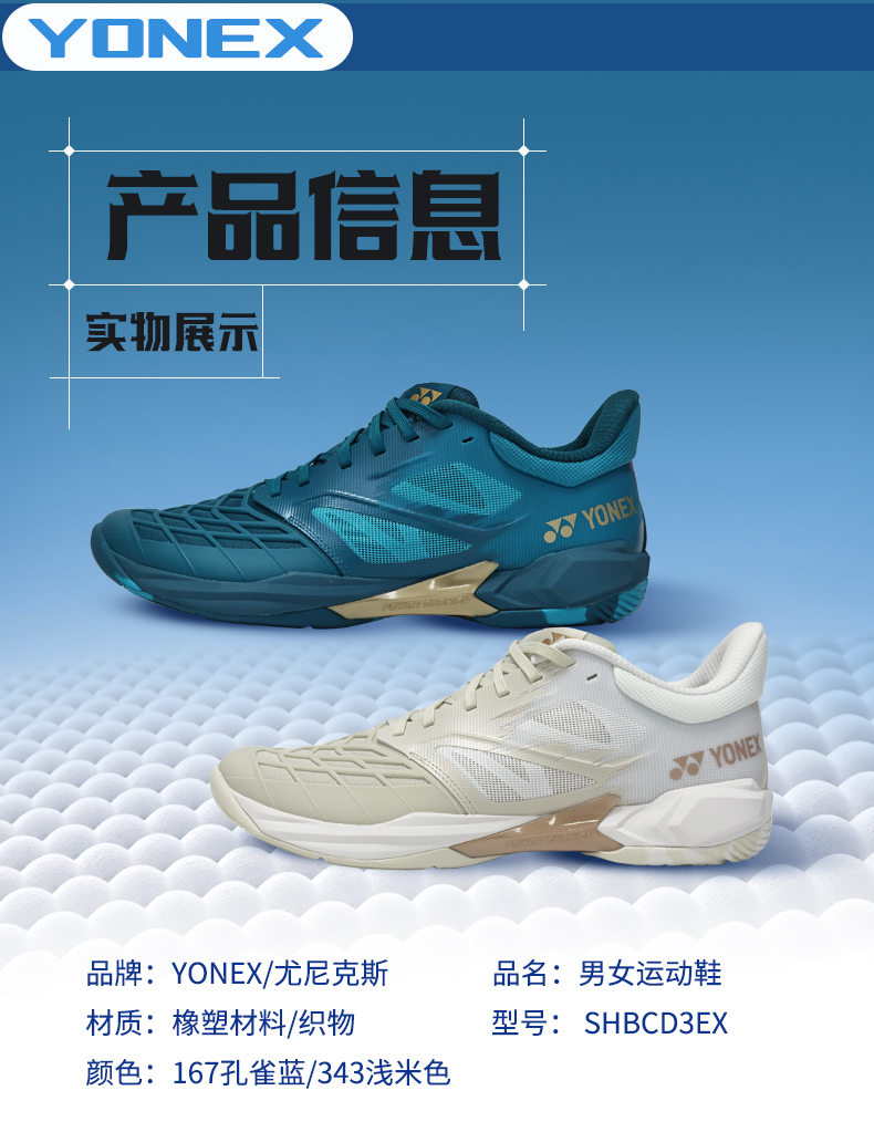 YONEX尤尼克斯羽毛球鞋男女训练比赛运动鞋SHBCD3EX防滑耐磨舒适透气