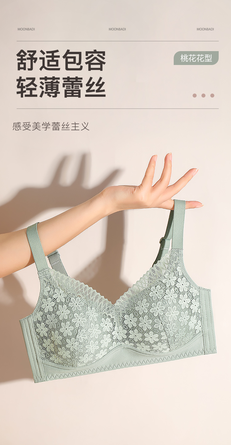 无痕裸感舒适轻薄蕾丝性感美背上托防下垂内衣女无钢圈文胸罩梦蝶之舞