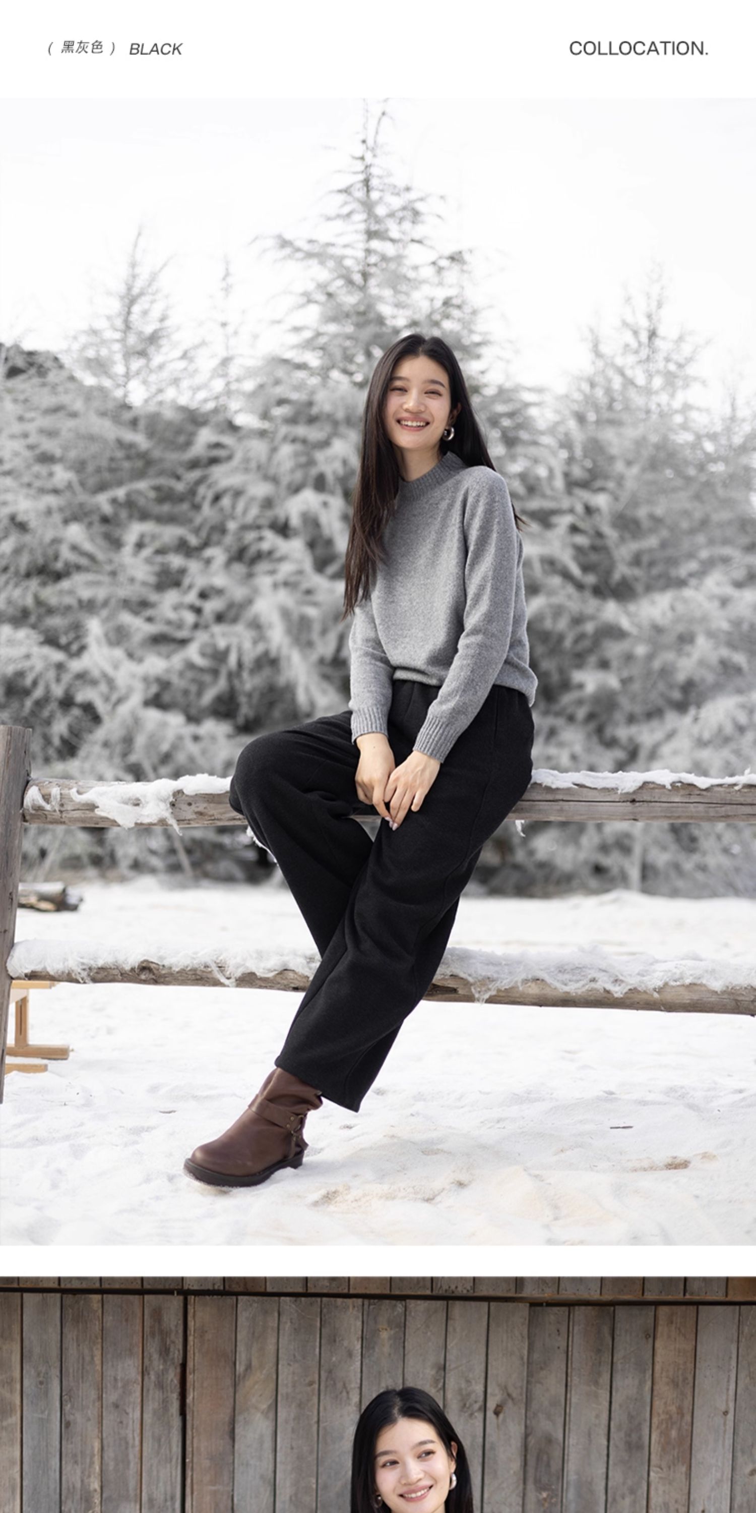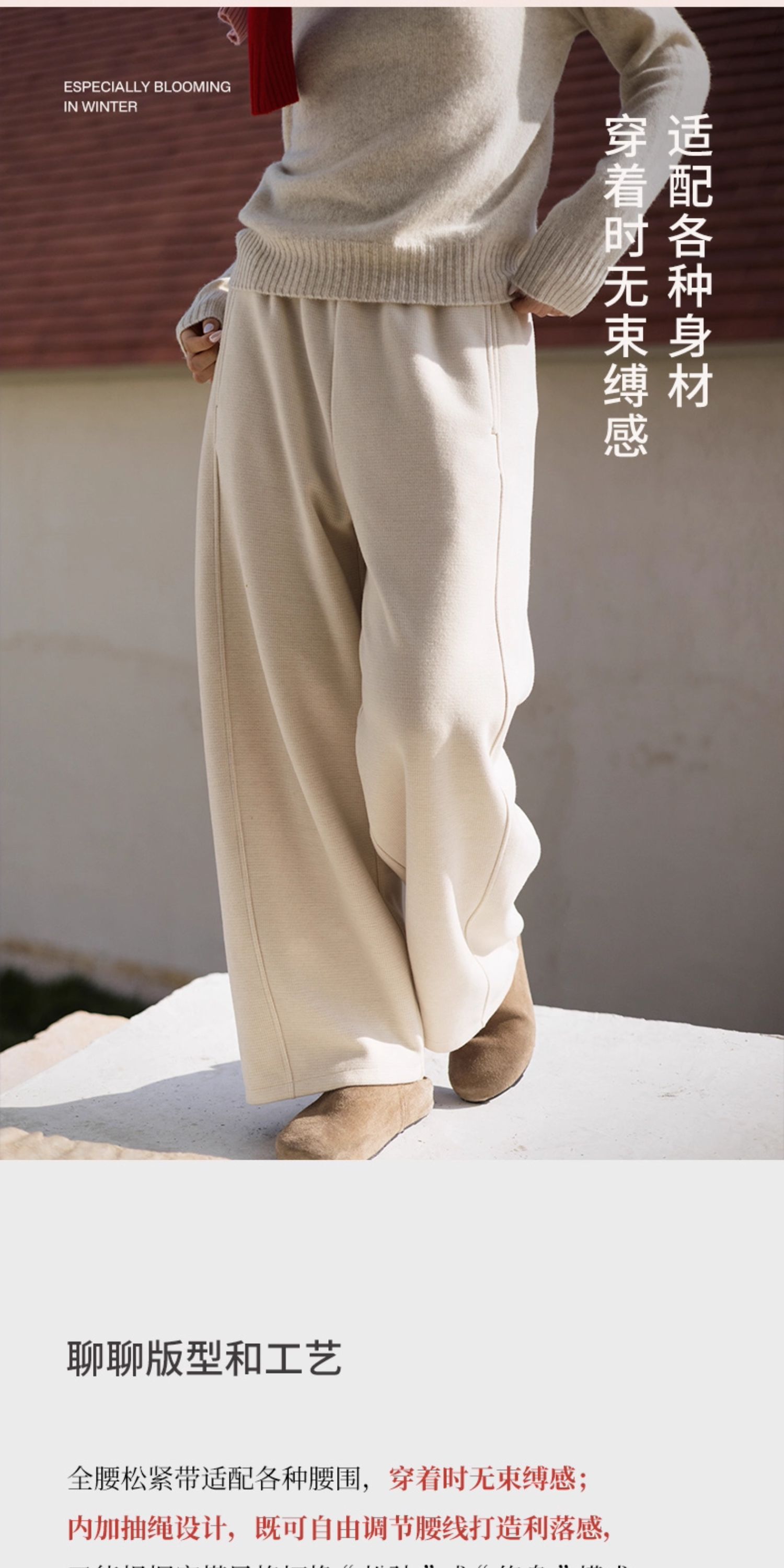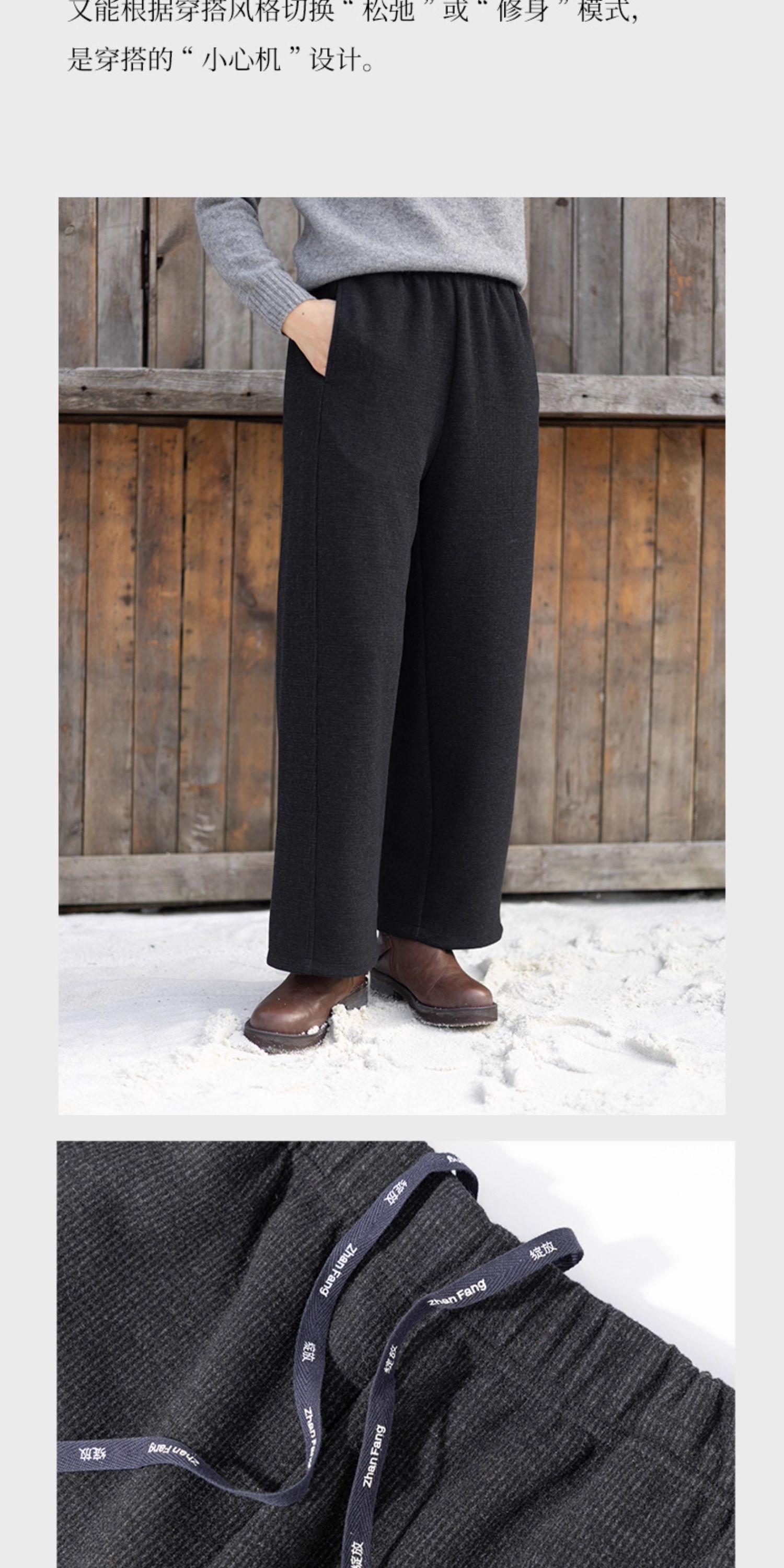 特绽放720朵/暖格裤·羊毛棉混纺加厚绒感全腰松紧显瘦休闲长裤女