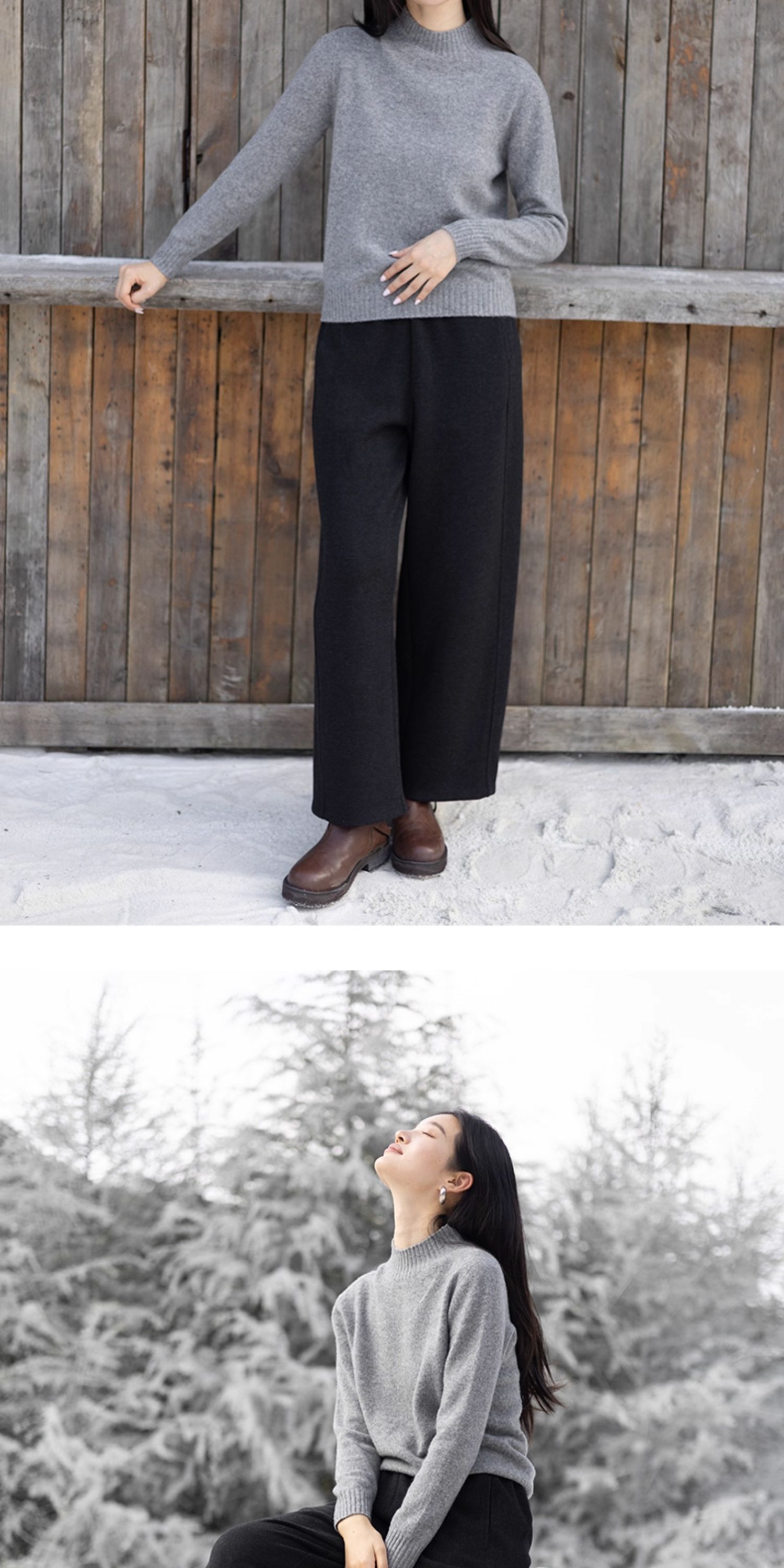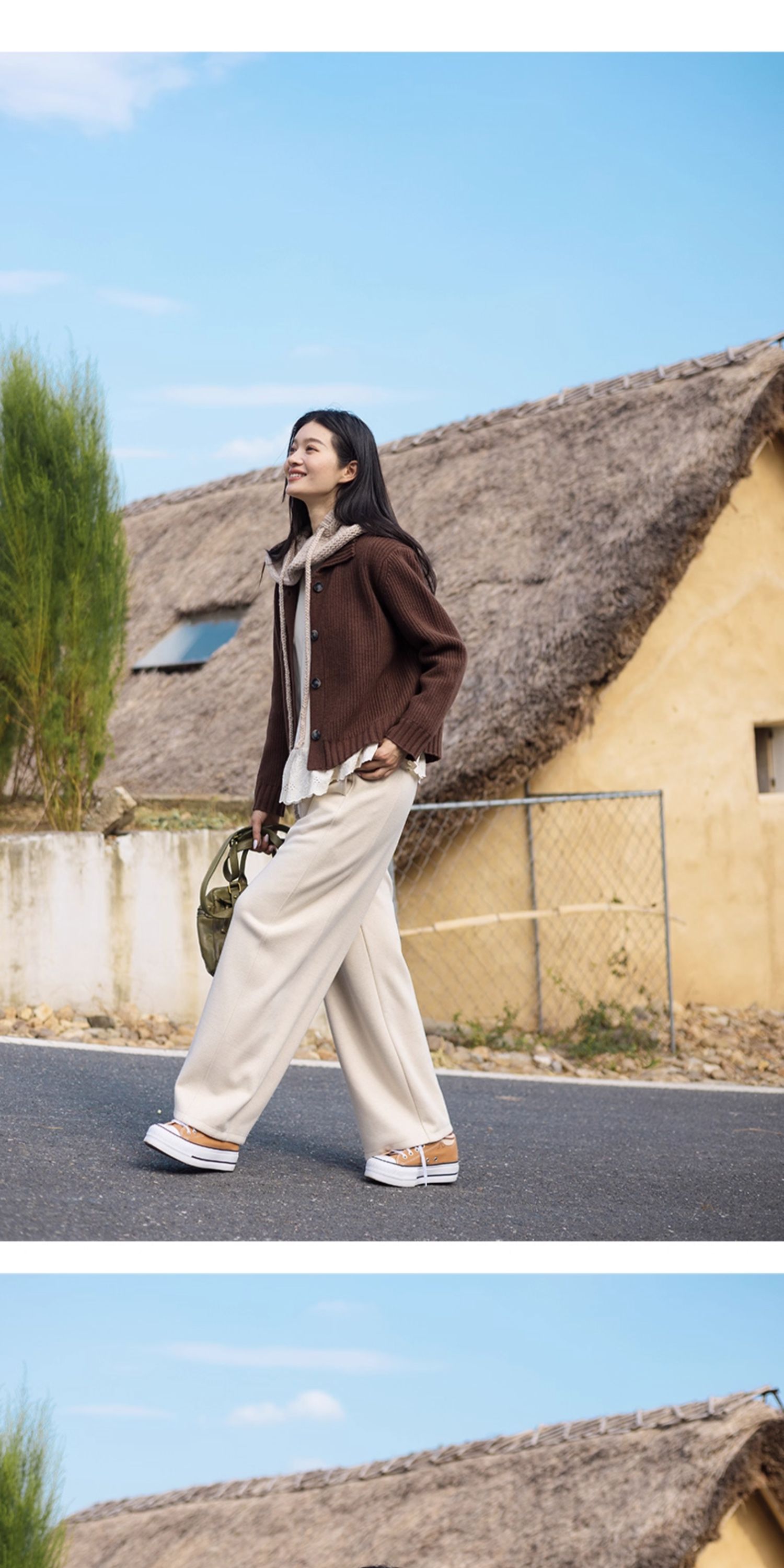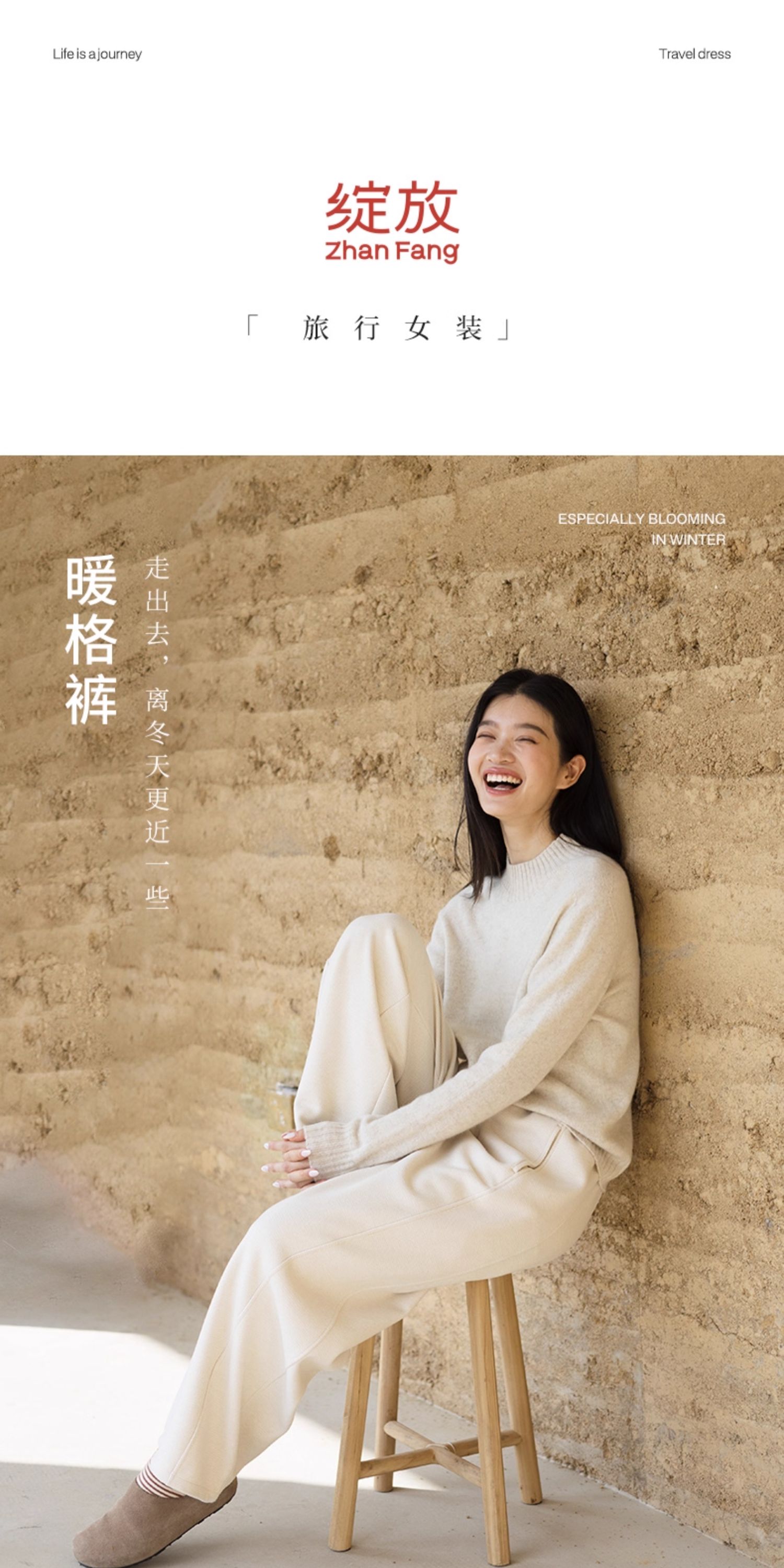 特绽放720朵/暖格裤·羊毛棉混纺加厚绒感全腰松紧显瘦休闲长裤女