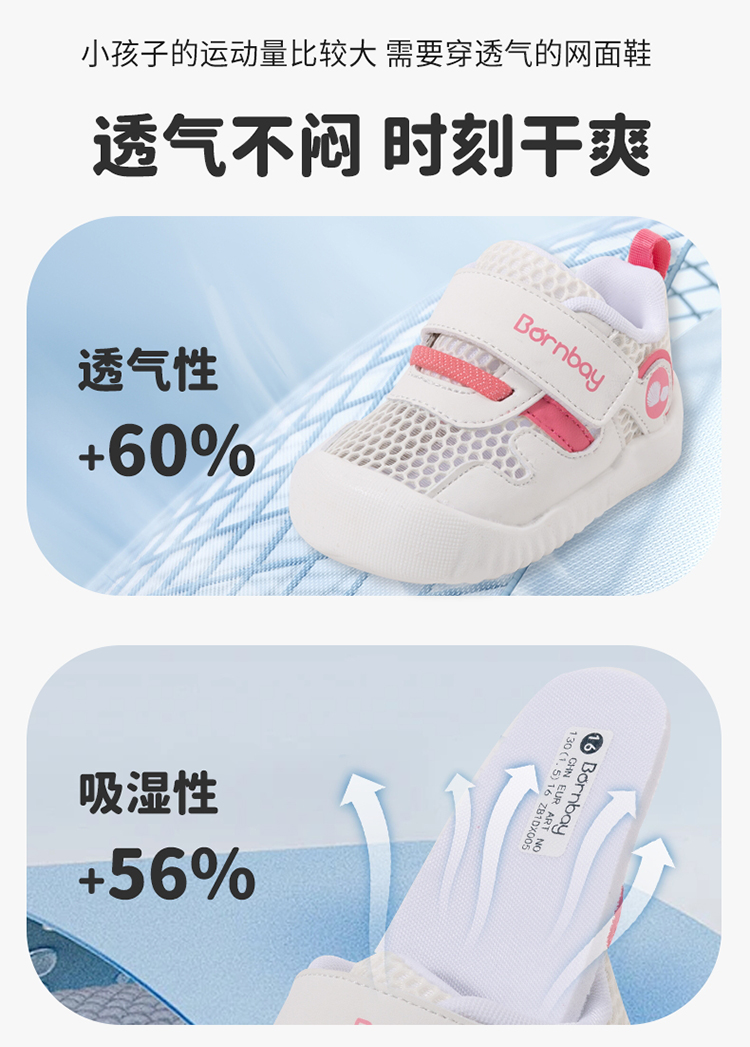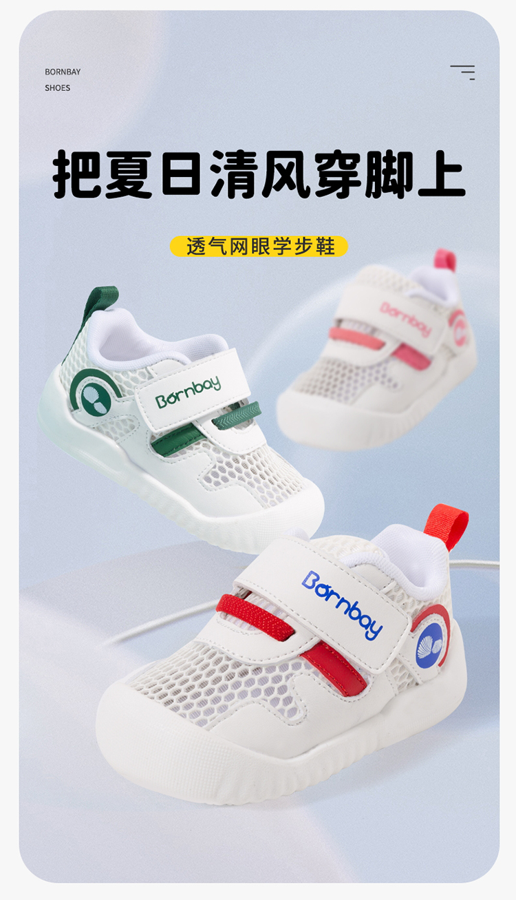 贝贝怡婴幼儿学步鞋2024夏季透气网面稳步鞋儿童一脚蹬宝宝休闲鞋ZB1DX005