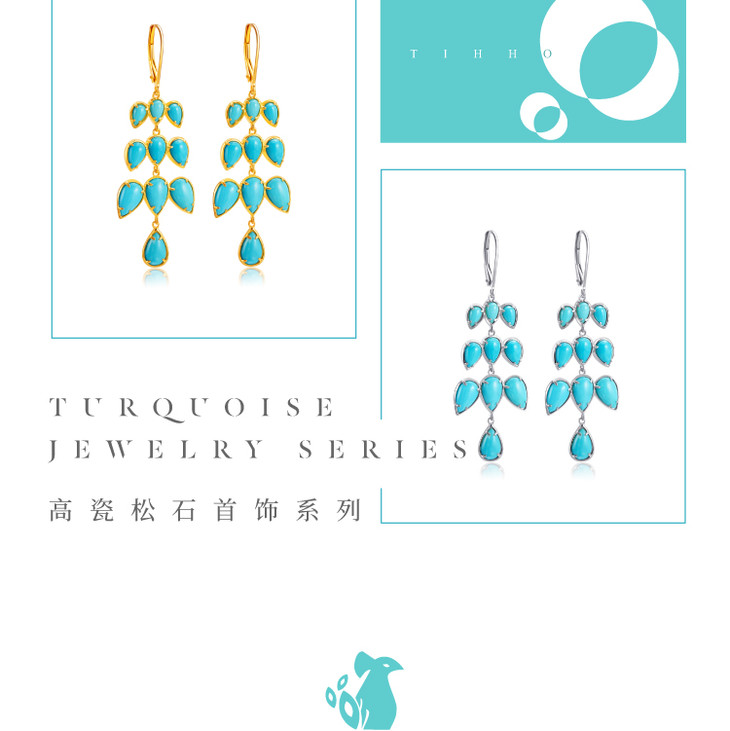 孔雀翎天然蓝松石水滴耳饰 原矿松石925银精致大气 醍醐原创设计 两款可选