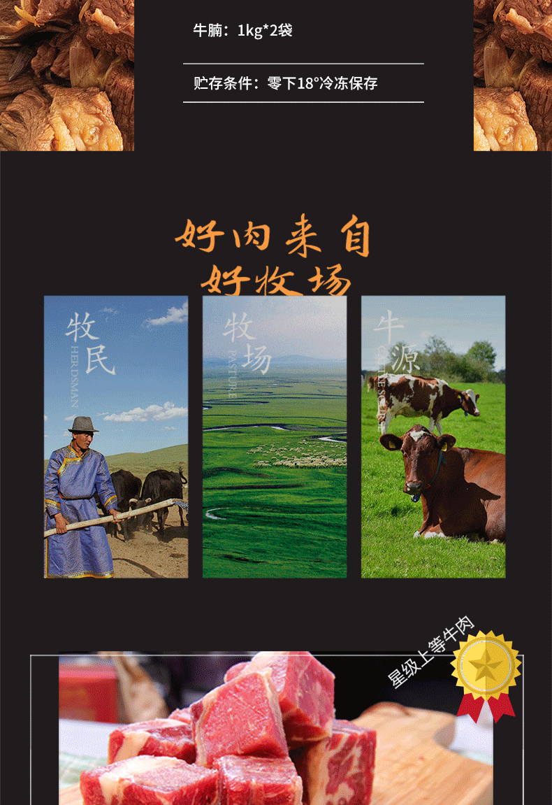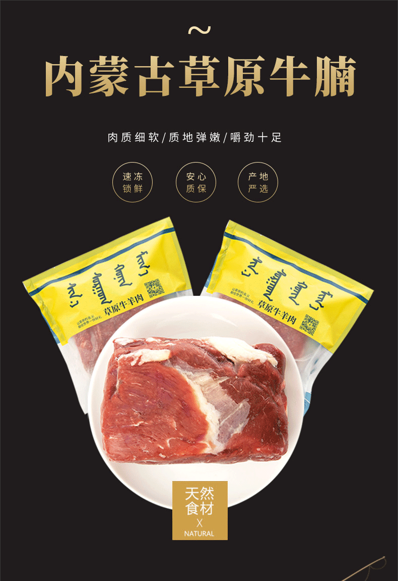 【草原牛腩】内蒙古草原牛肉原切牛腩 1kg*2袋 2岁龄 包邮