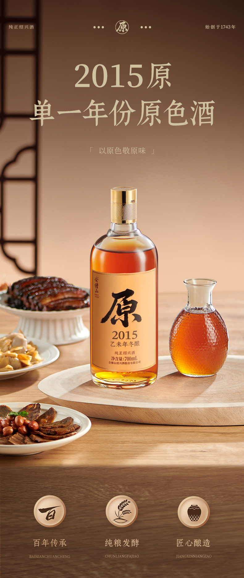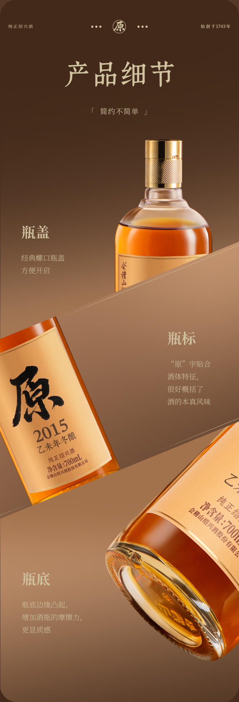 会稽山官旗 绍兴黄酒 2015年大雪冬酿原色原酒700Ml*6无焦糖色黄酒