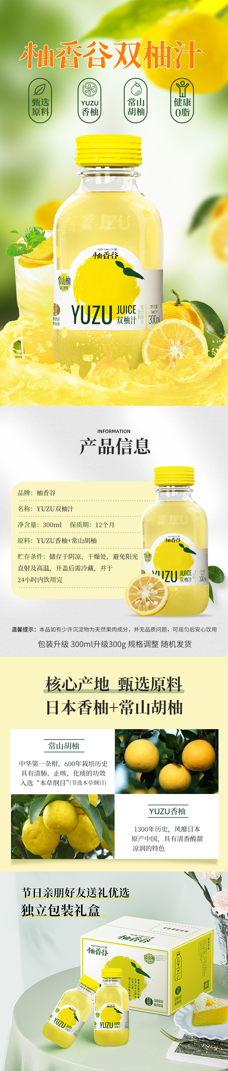 【常山县】柚香谷双柚汁 日本香柚+常山胡柚 健康0脂肪