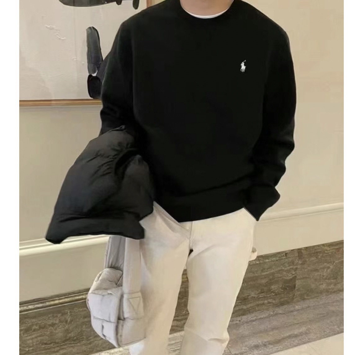 高品质 可扫码小马刺绣纯色长袖款式上衣圆领卫衣套头男 商品图0