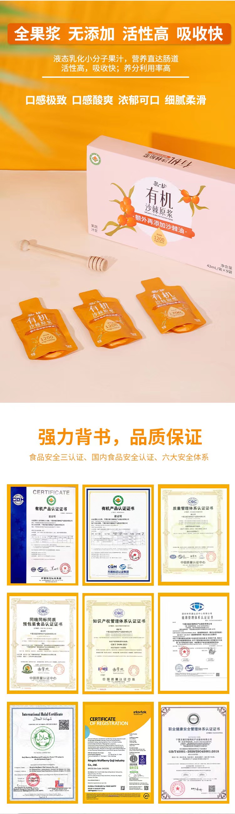【有机沙棘原浆】奕虹定制沙棘原浆 有机沙棘 额外添加沙棘籽油 0添加,不添加糖。口感优化 内蒙古小果沙棘 食品安全三认证国内食品安全认证 六大安全体系