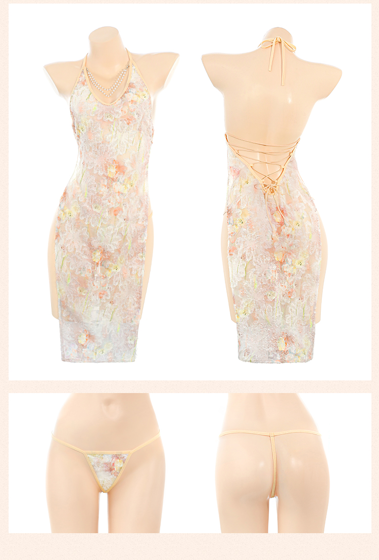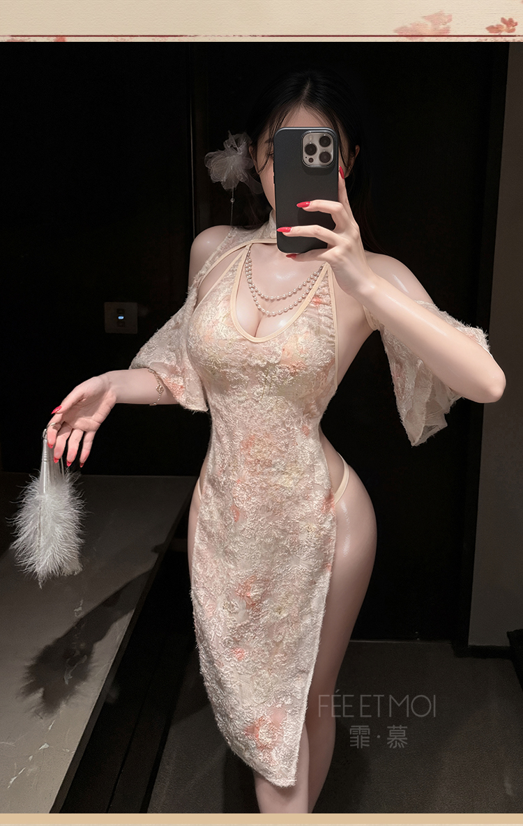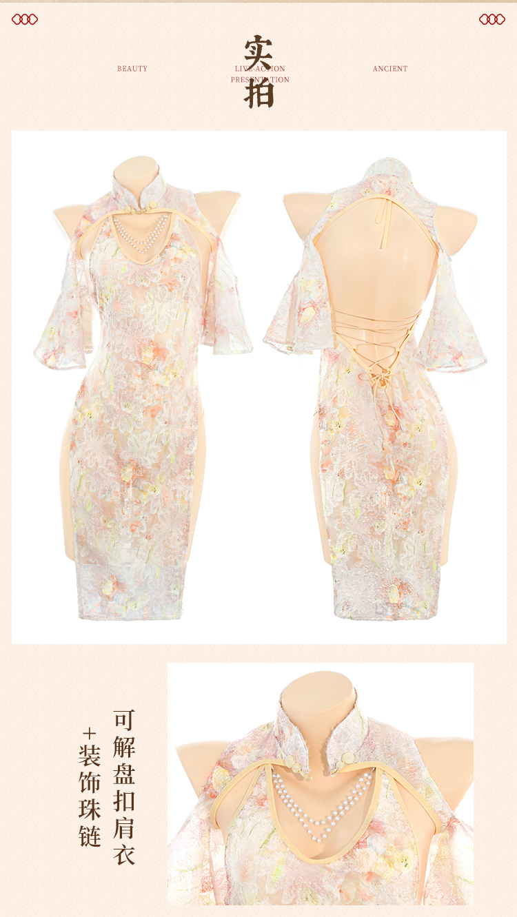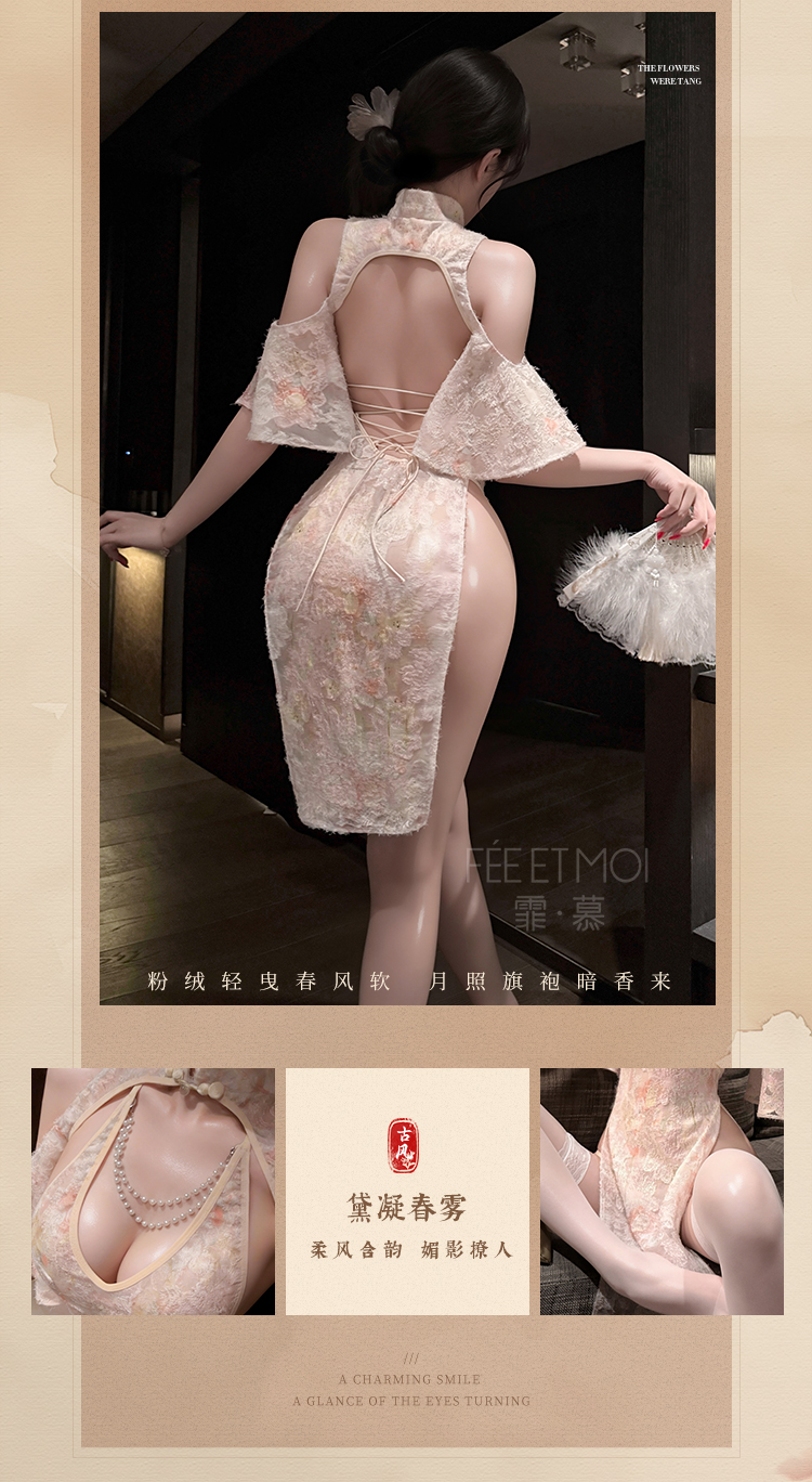 产品特点: 古典露背连体旗袍装 柔软舒适天鹅绒料 大胆露背 立领