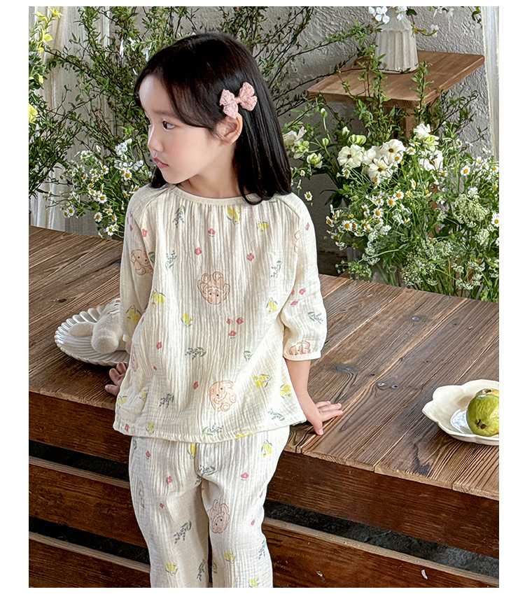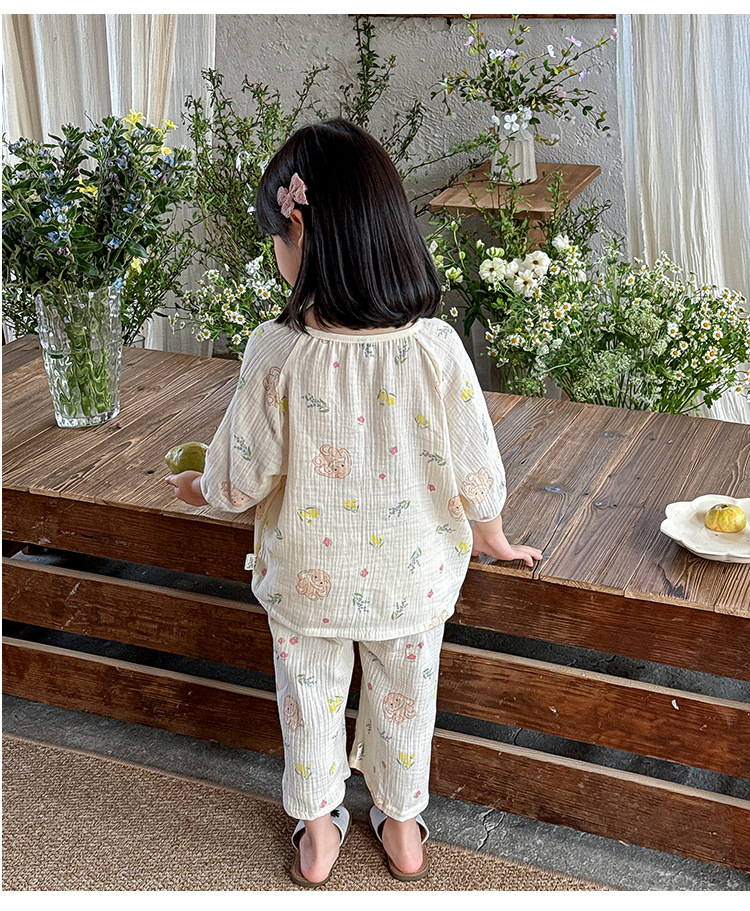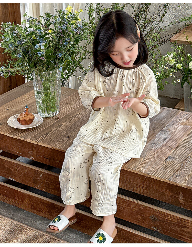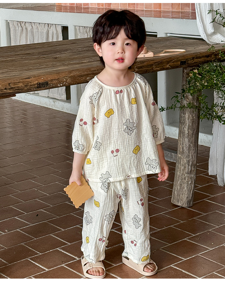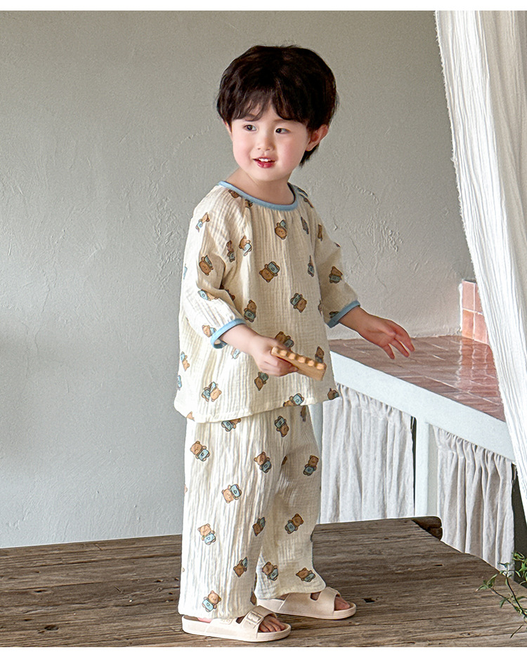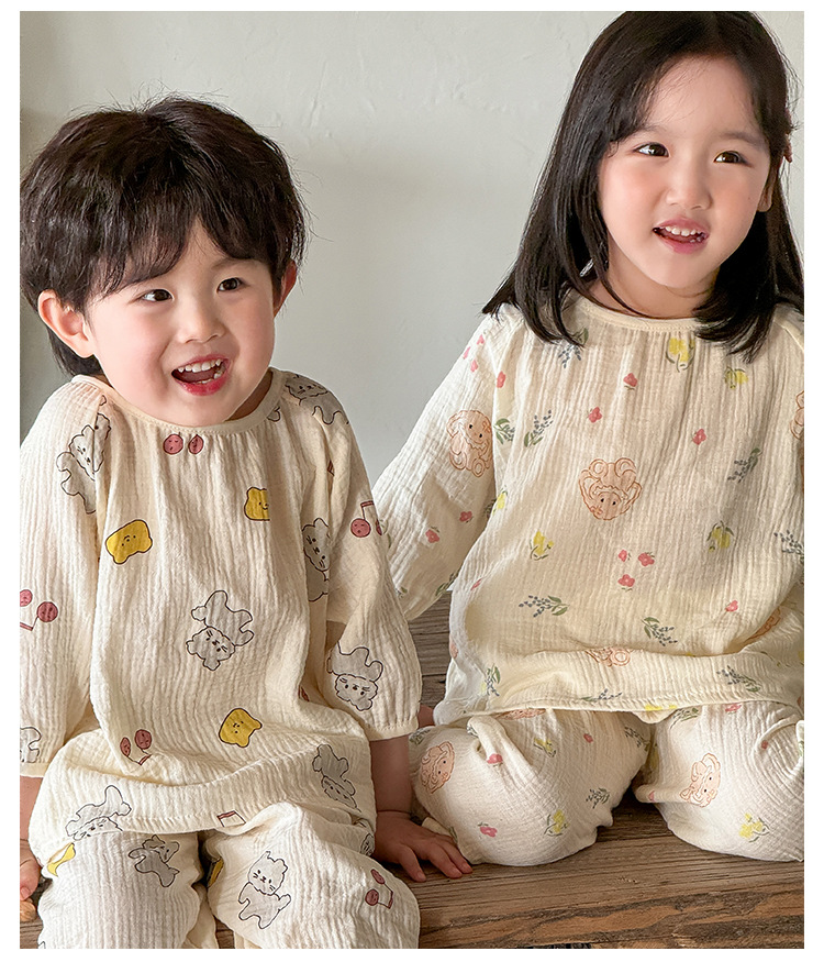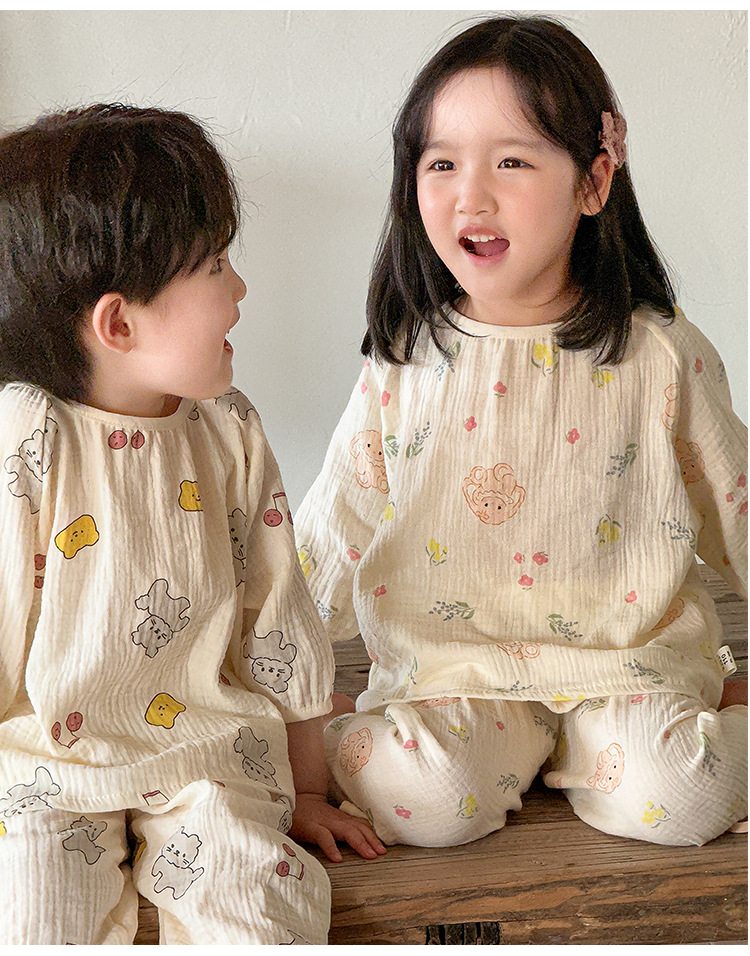 【A类儿童纱布睡衣套装】儿童睡衣a类夏天纯棉纱布家居服套装,吸汗透气舒适柔软,可爱薄款女童男孩宝宝空调服睡衣家居服QQ