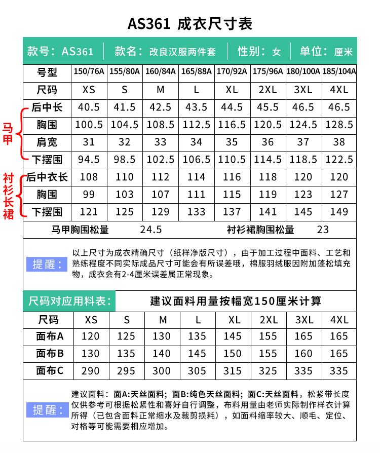裁缝学苑AS361新中式国风长袖连衣裙纸样马甲衬衫裙套装女装改良汉服样板