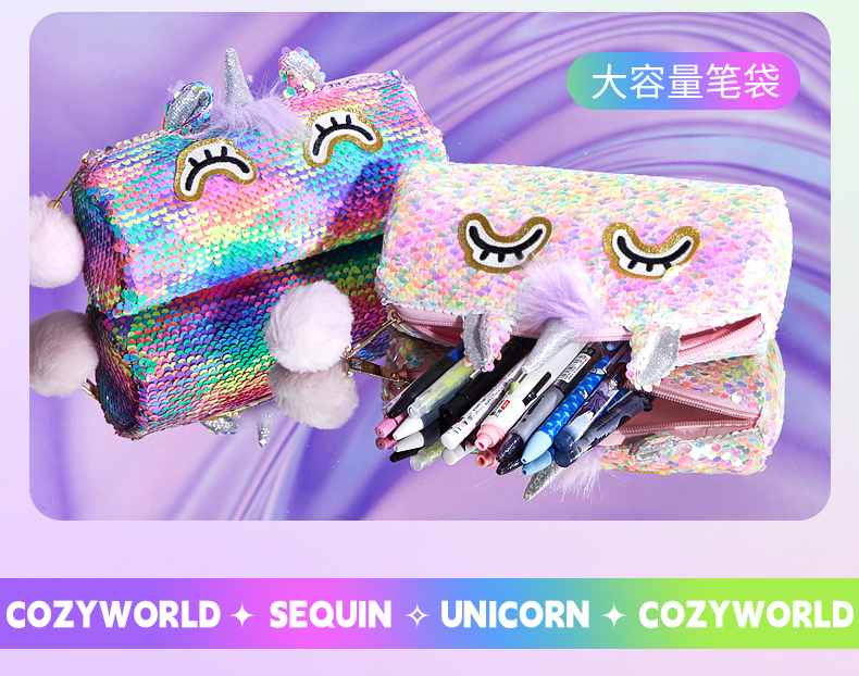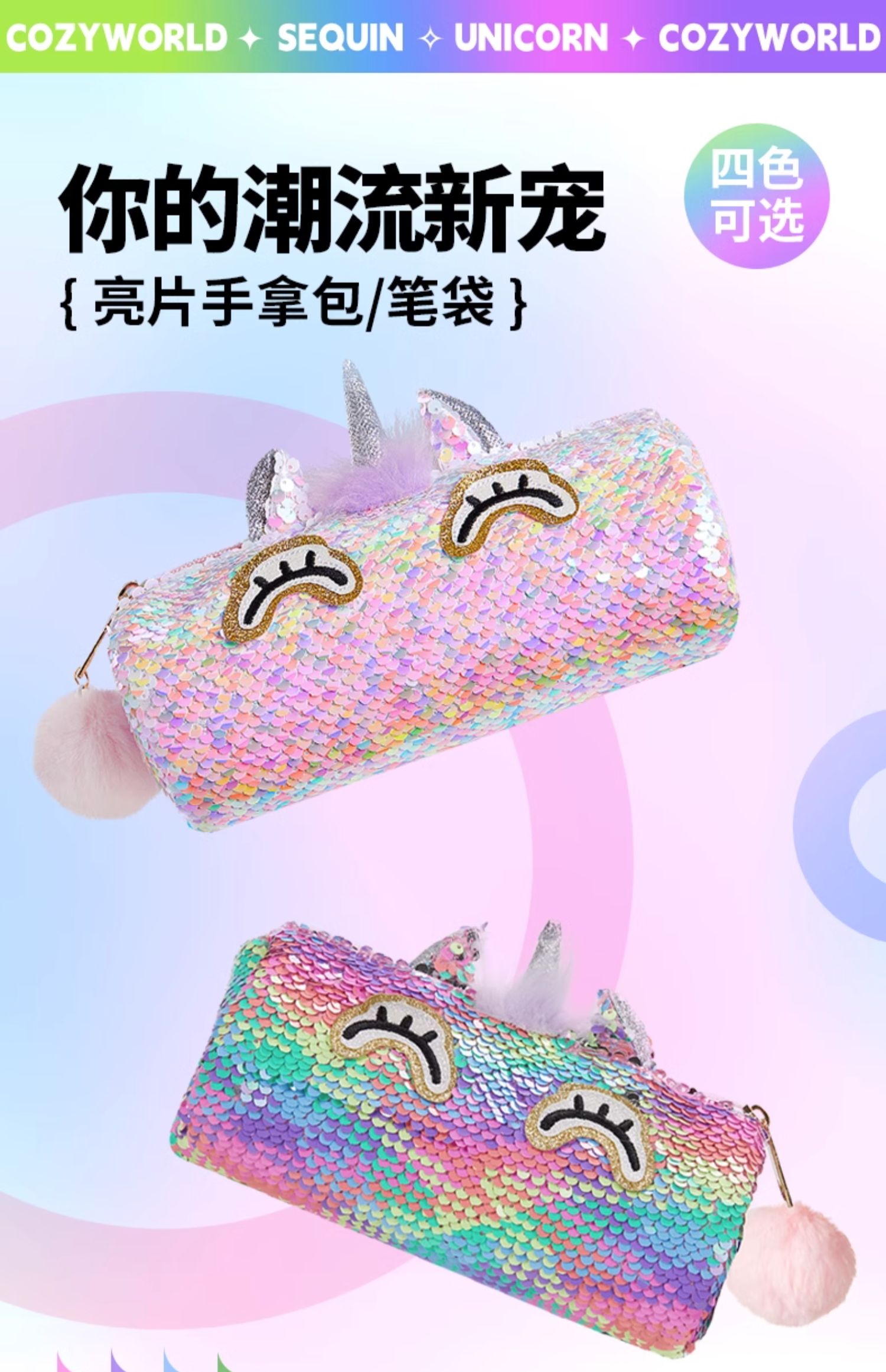 9楼母婴生活馆 CozyWorld亮片文具笔袋大容量笔盒可爱卡通手拿包礼物 活动价:99元