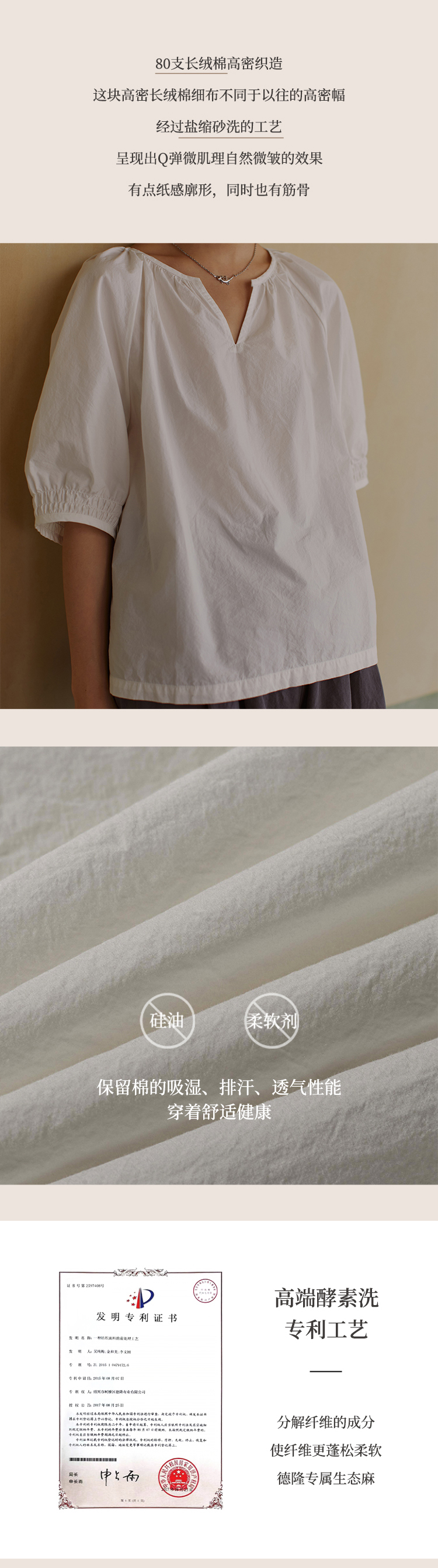 绽放506朵【黑白灰系列·小薇】进口匹马棉纸感凉爽V领小上衣T恤