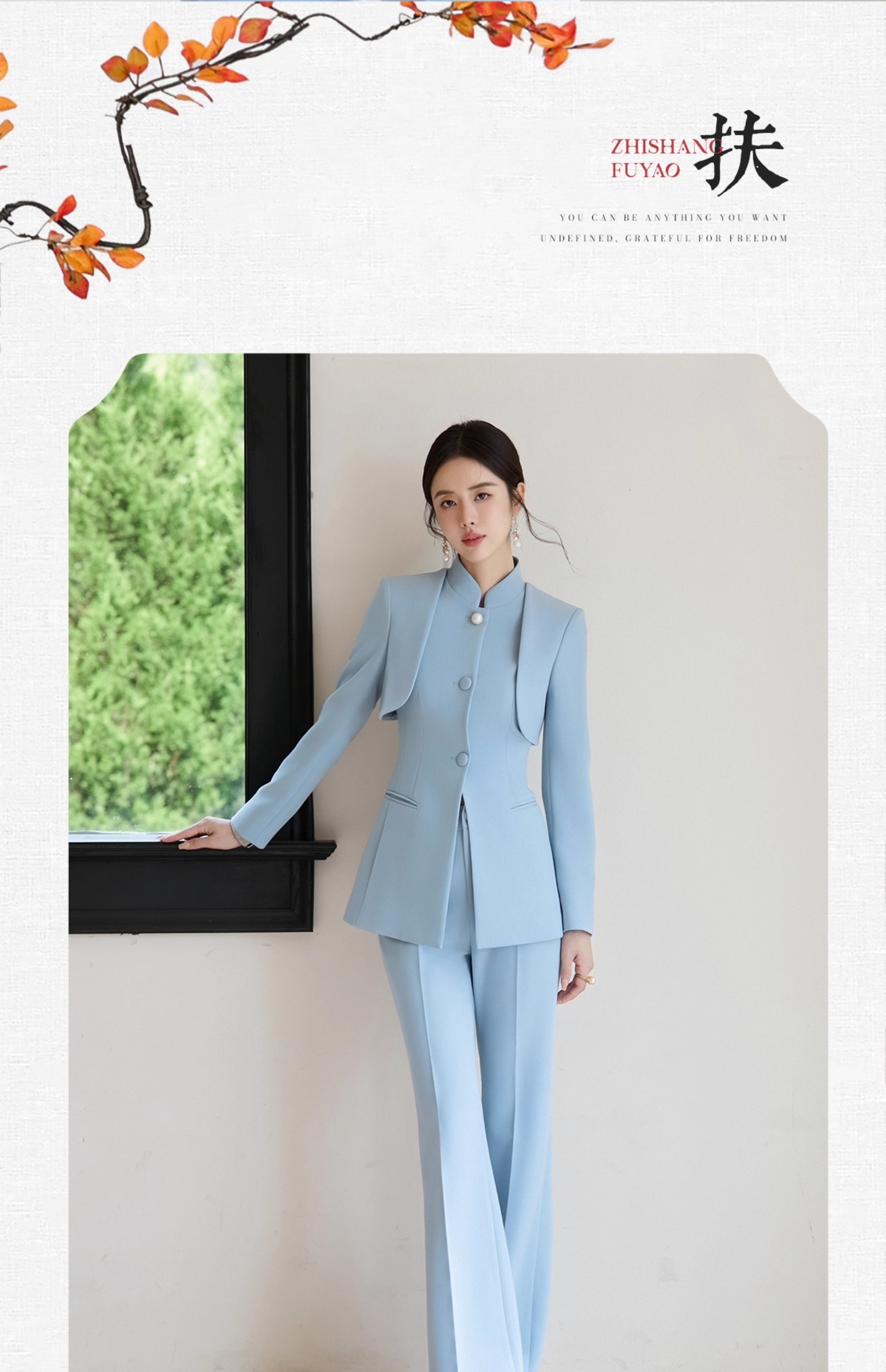 FUYAO扶摇 新中式西装套装女秋冬季老钱风女装高级感改良西服上衣