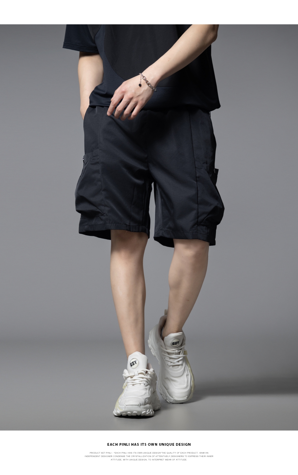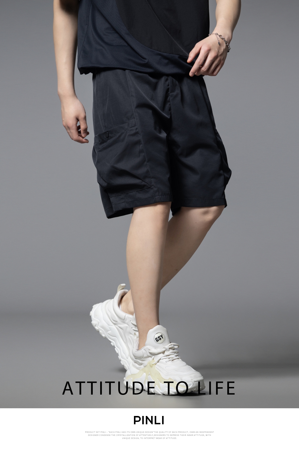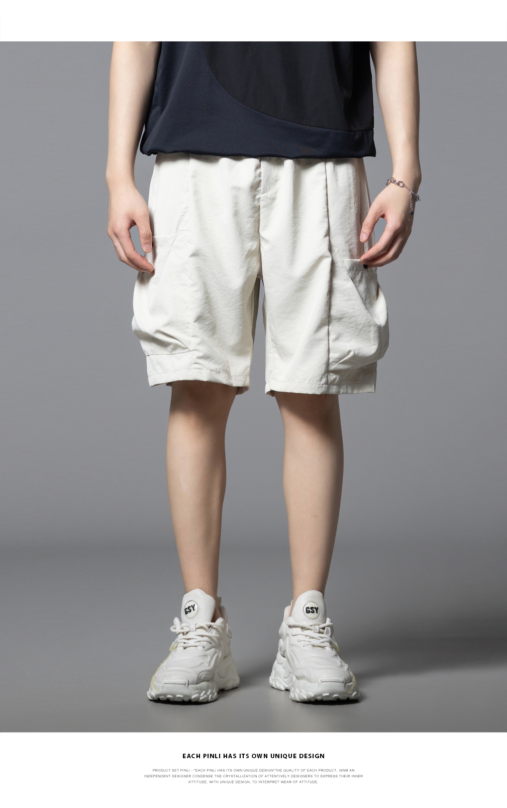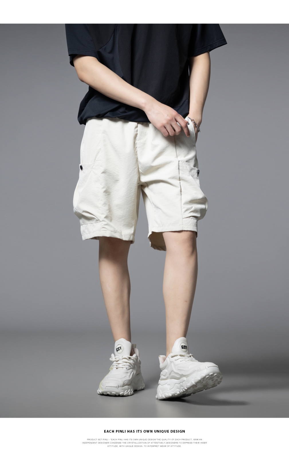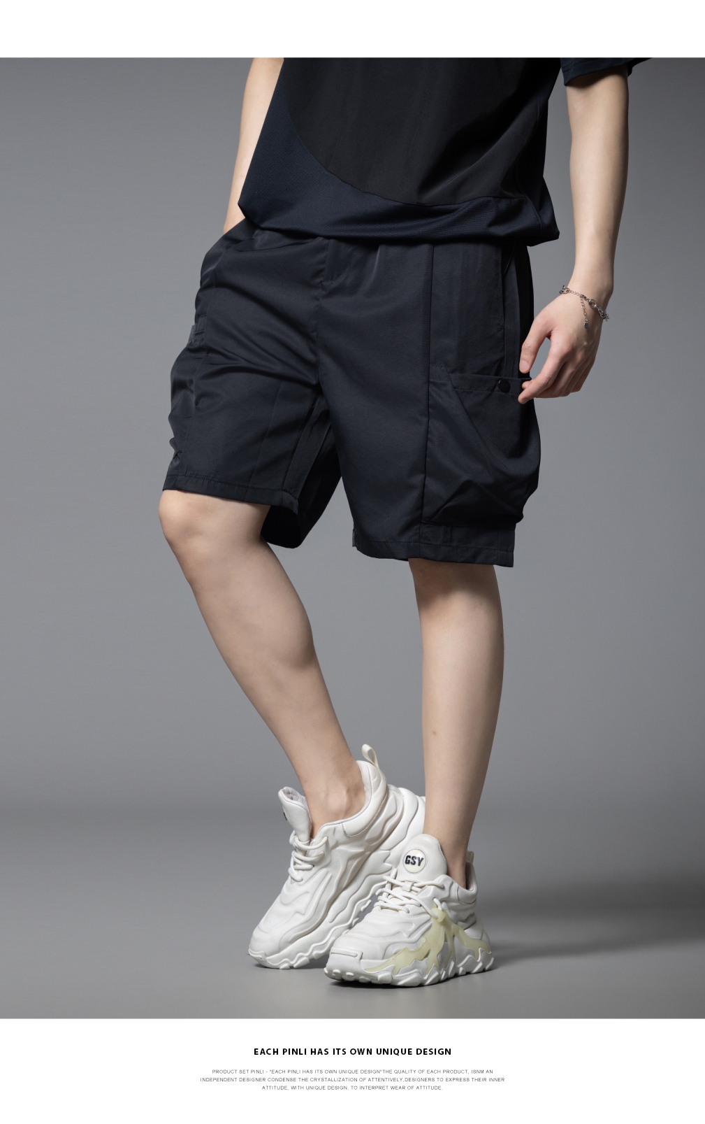 PINLI品立2025夏季新款男户外工装短裤潮流个性大口袋宽松五分裤GD252117373
