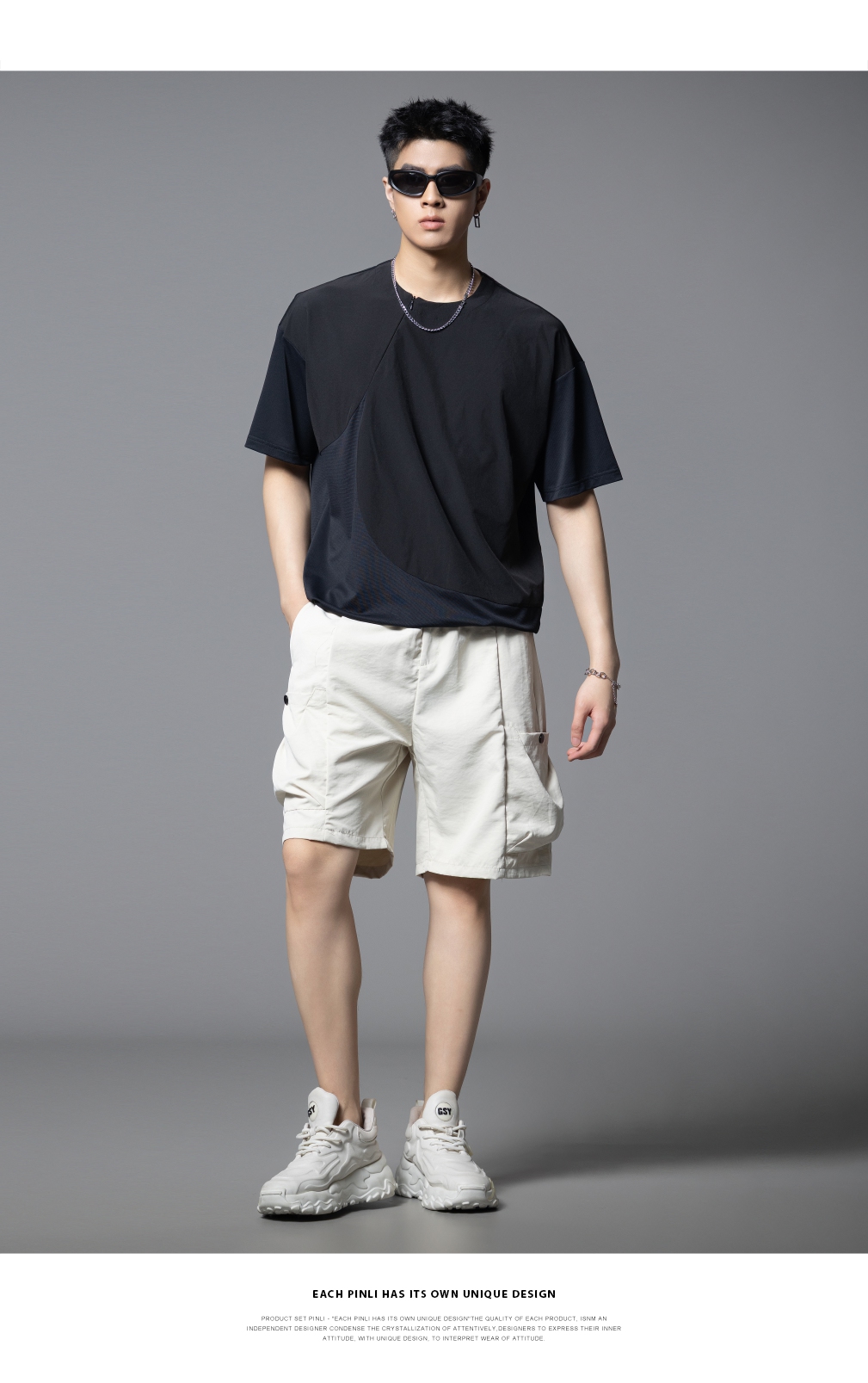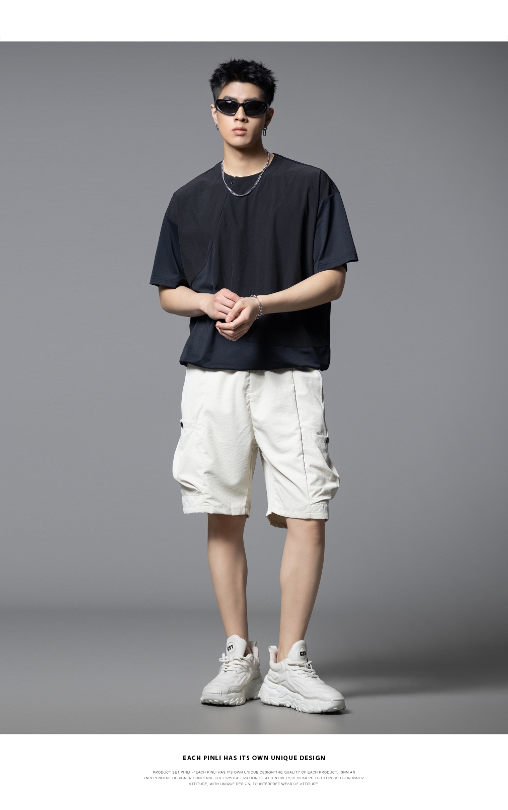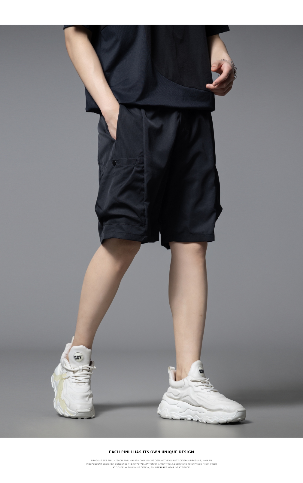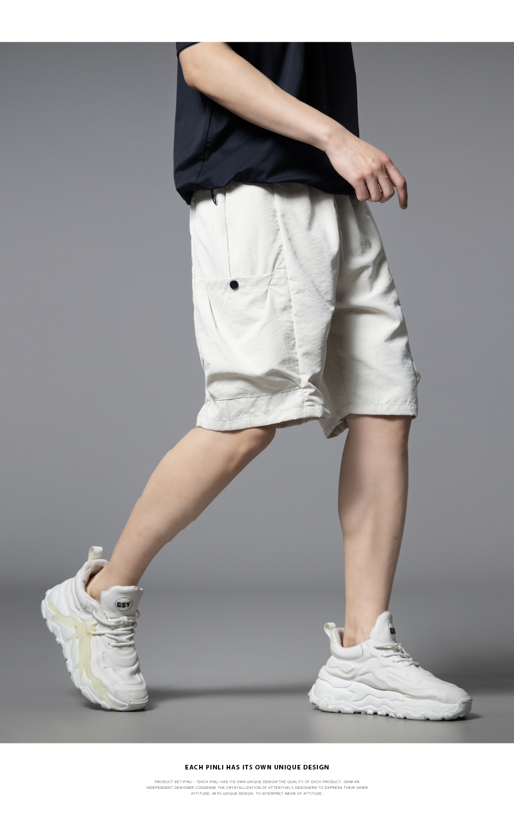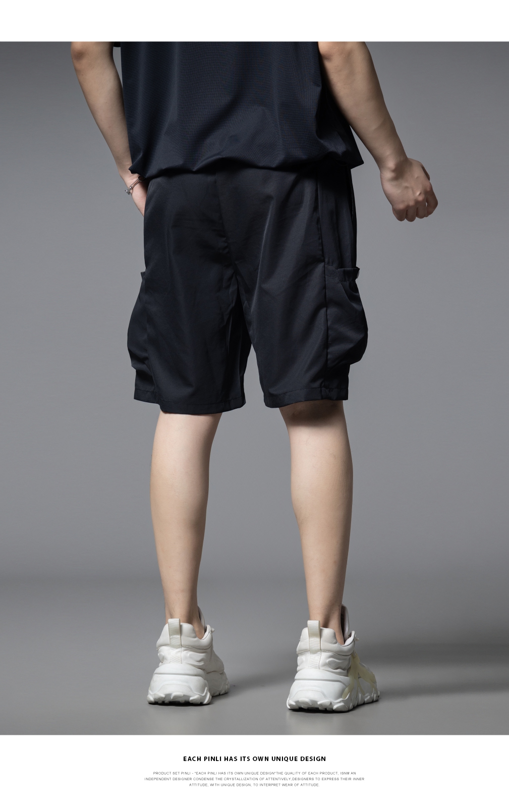 PINLI品立2025夏季新款男户外工装短裤潮流个性大口袋宽松五分裤GD252117373
