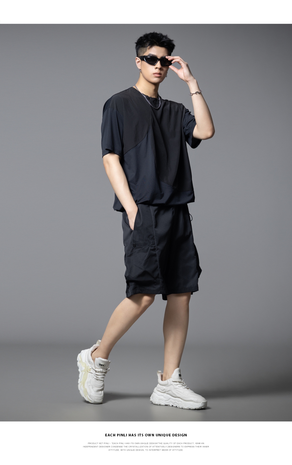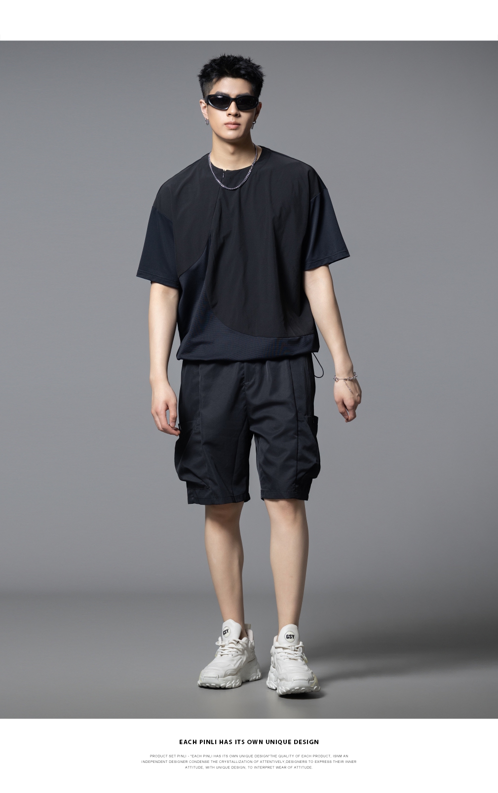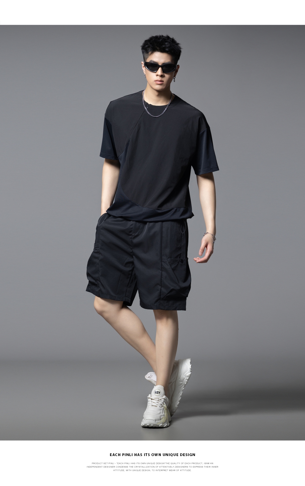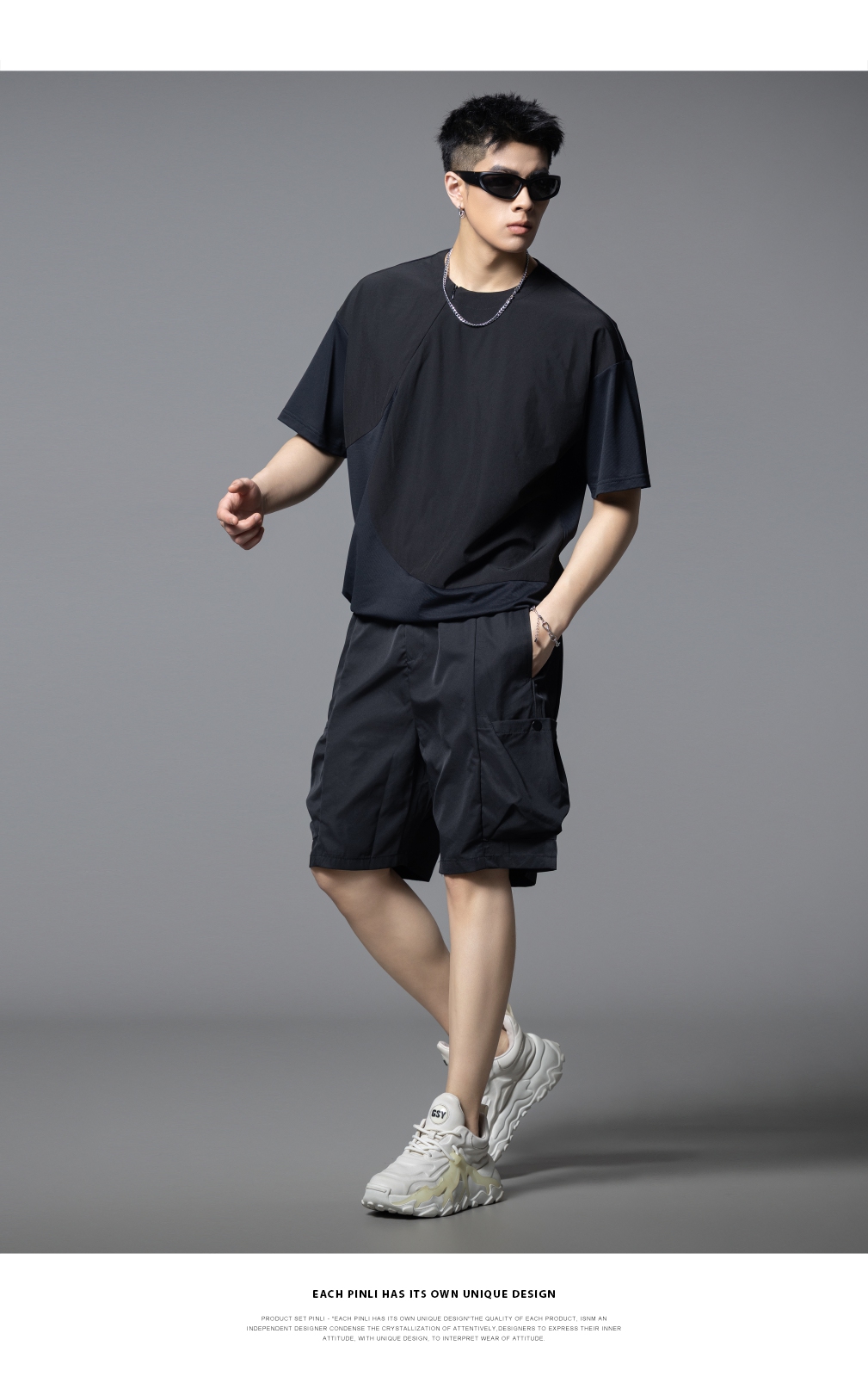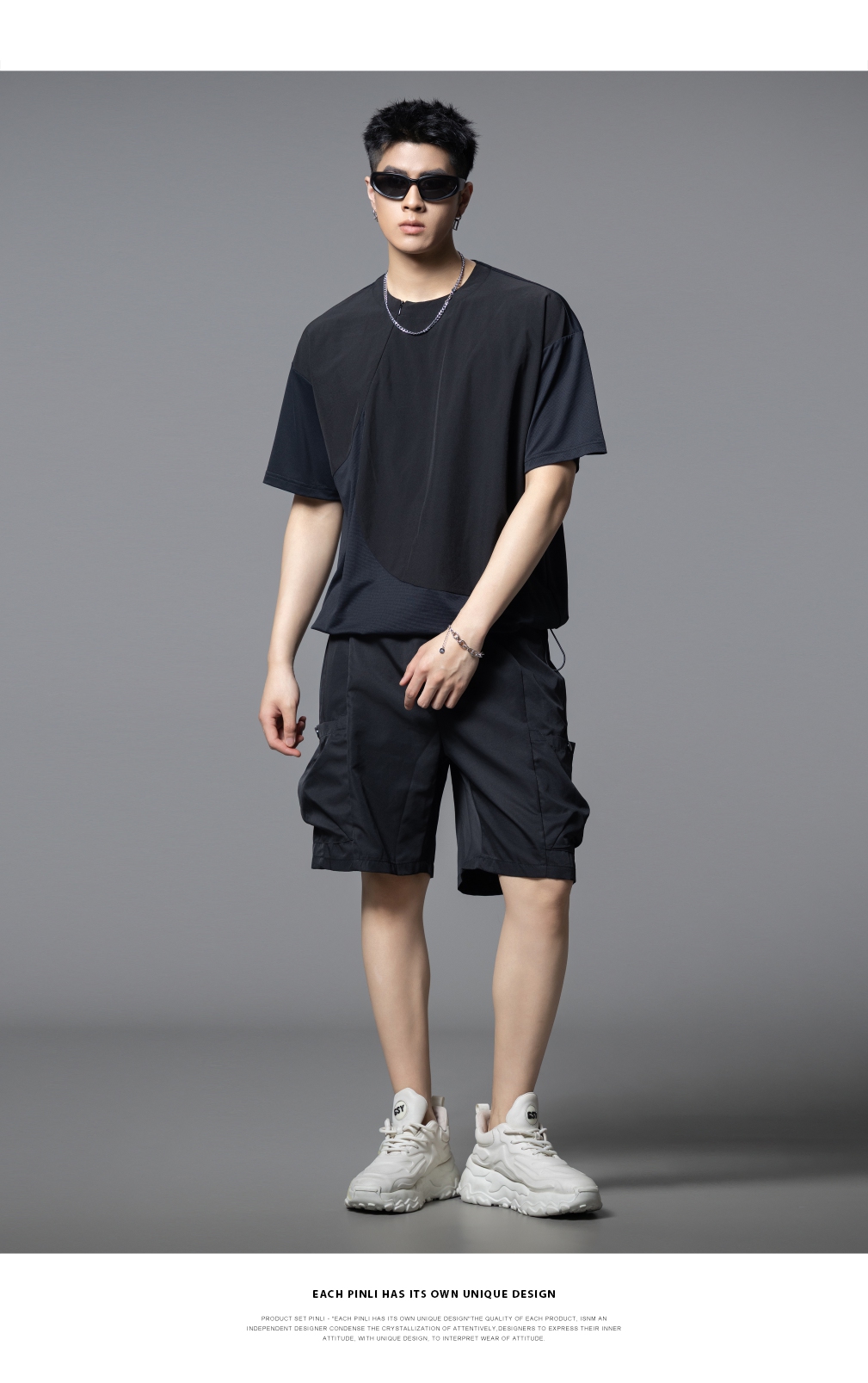 PINLI品立2025夏季新款男户外工装短裤潮流个性大口袋宽松五分裤GD252117373