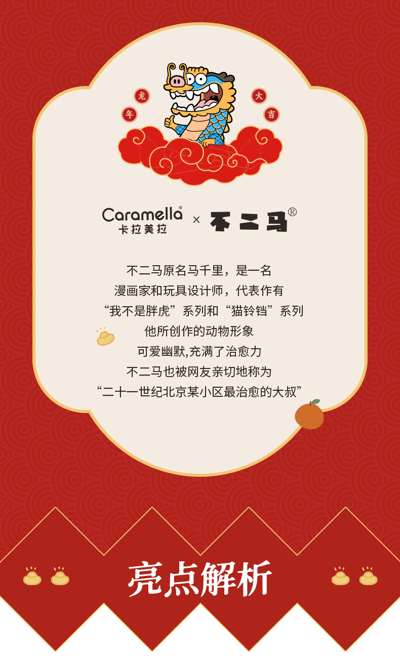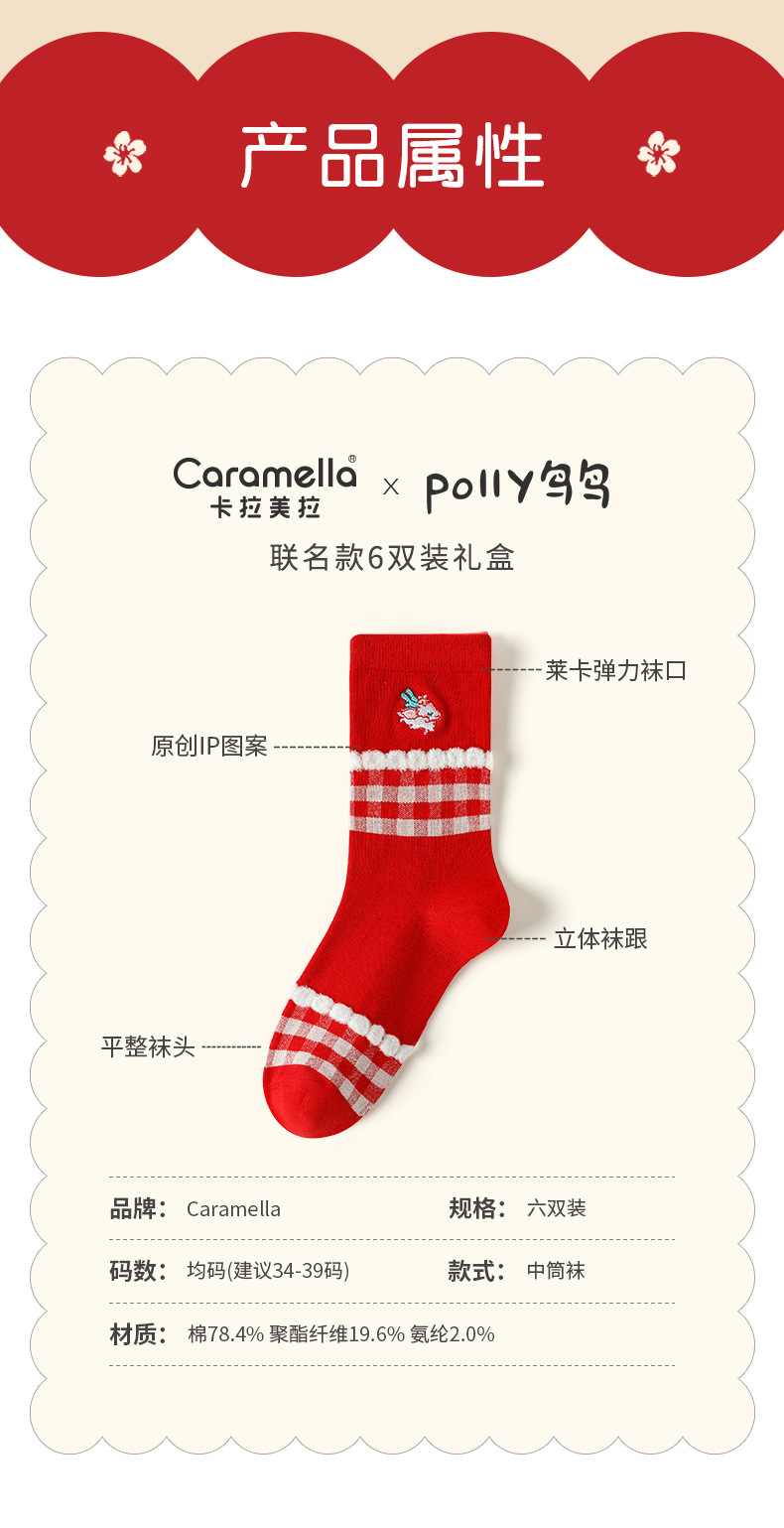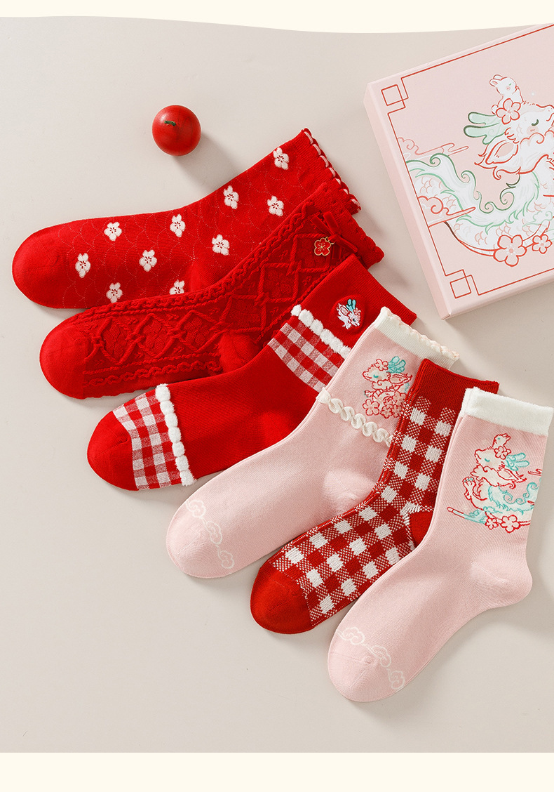 Caramella龙年女袜男袜礼盒装 鱼跃龙门龙年红色男女情侣中筒棉袜新年礼品袜
