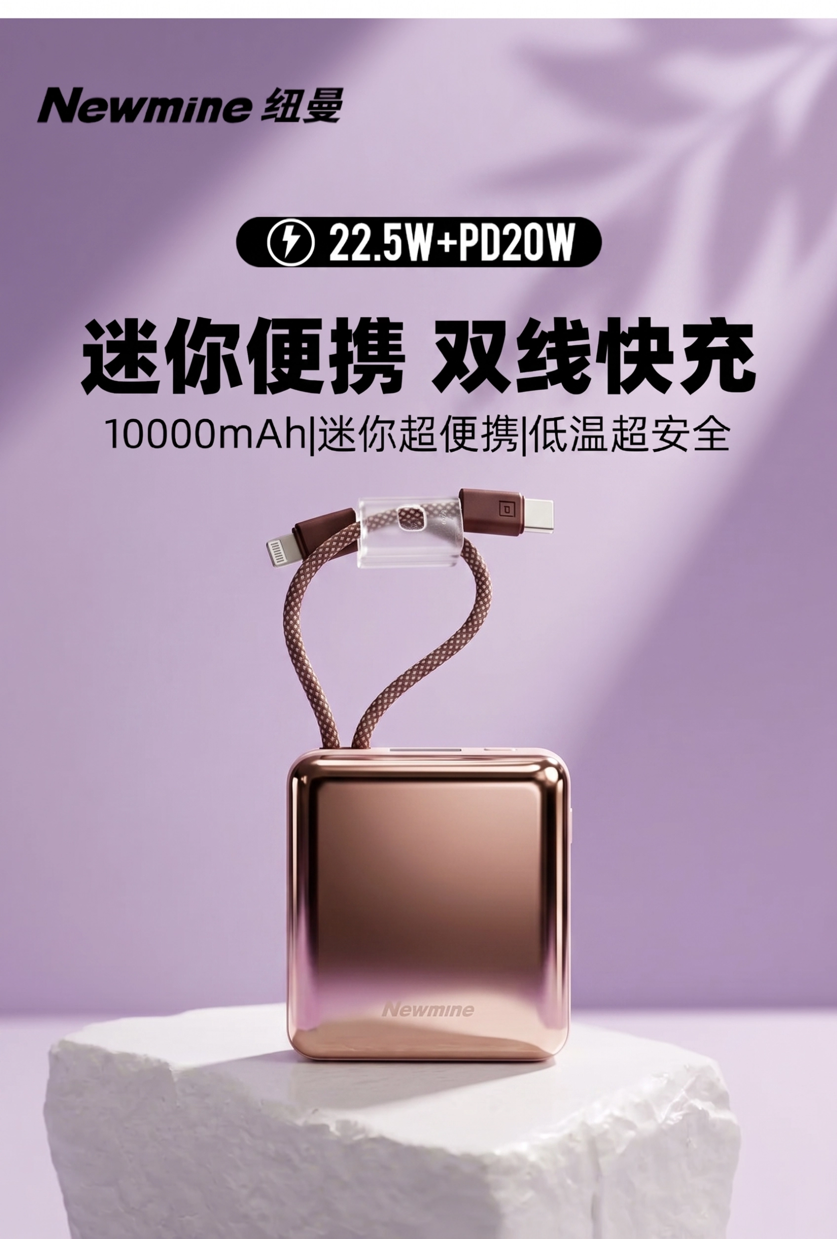 2026 Newmine升级版T008迷你充电宝 | 10000毫安,3C认证有溯源码,Type- C+Lightning双线和一个接口【48-72小时发货,周日不发顺延】