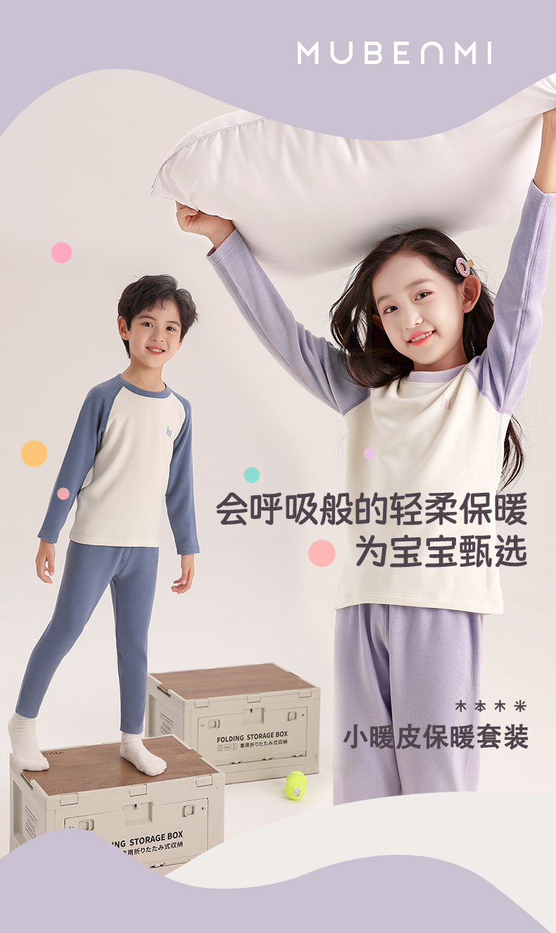 【微绒保暖衣】MUBENMI儿童小暖皮打底衫&套装