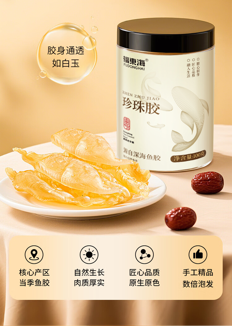 福东海 小黄花鱼胶100g 深海鱼肚鳔干黄花筒煲汤孕妇营养品礼盒物品送礼