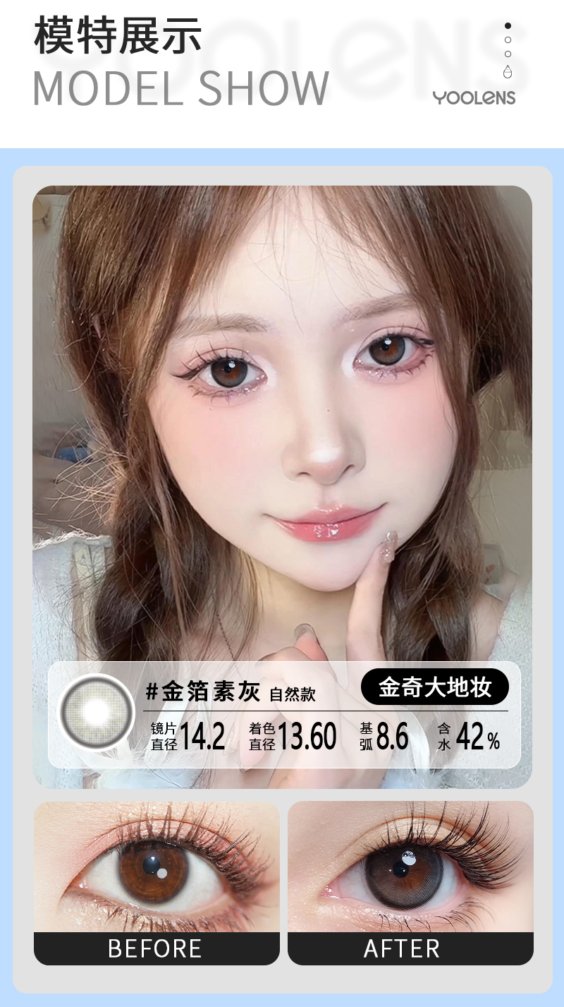 秒变深邃电眼!日抛金箔素灰美瞳来袭 YR01GR