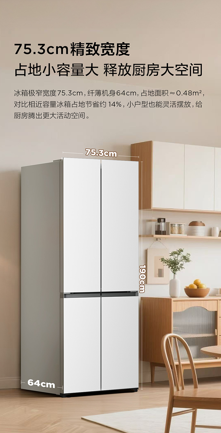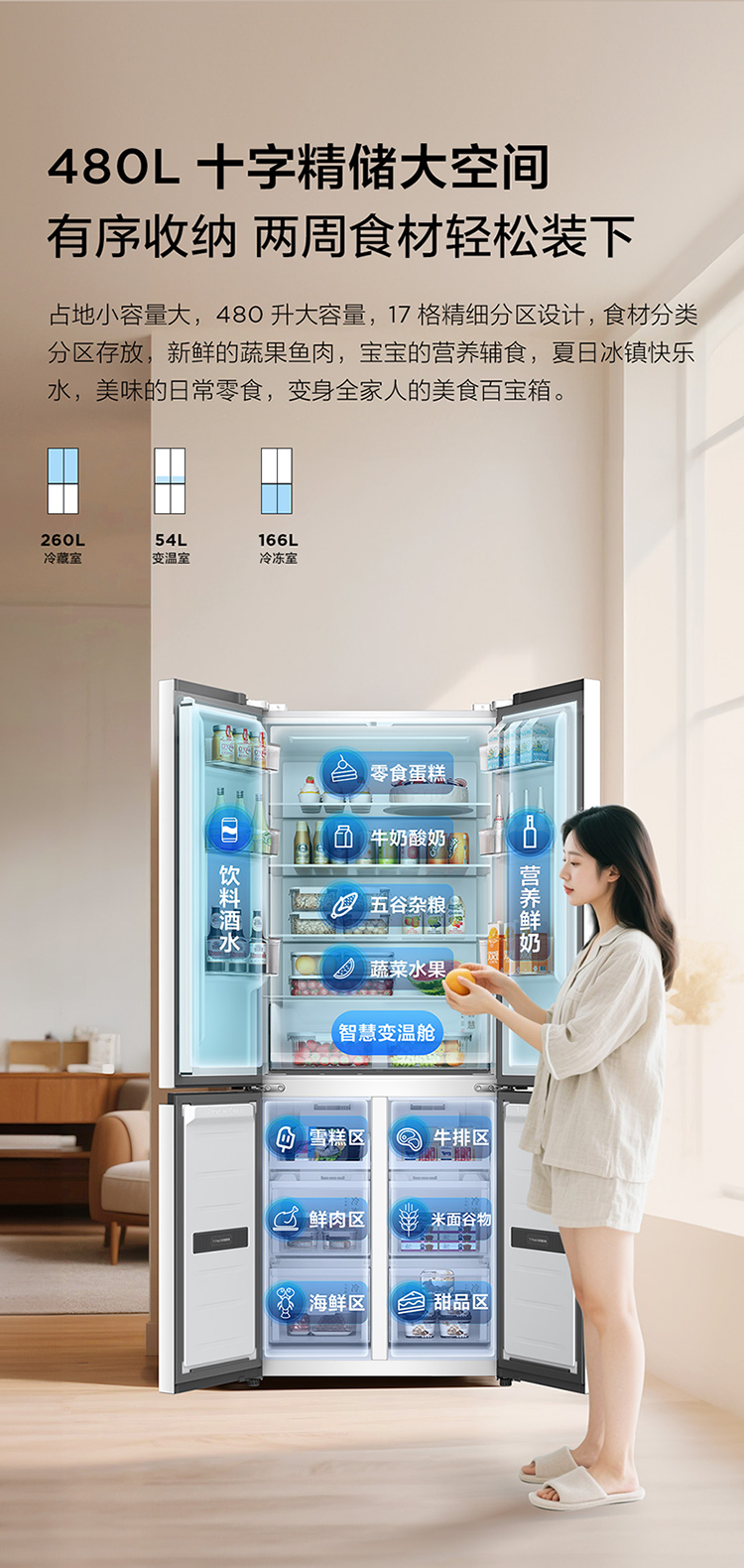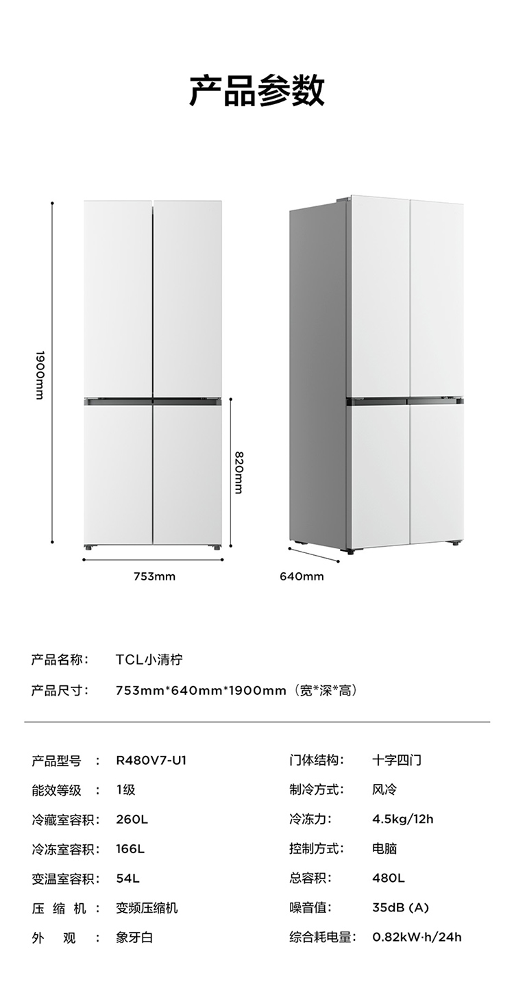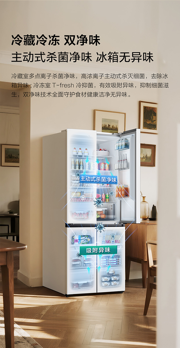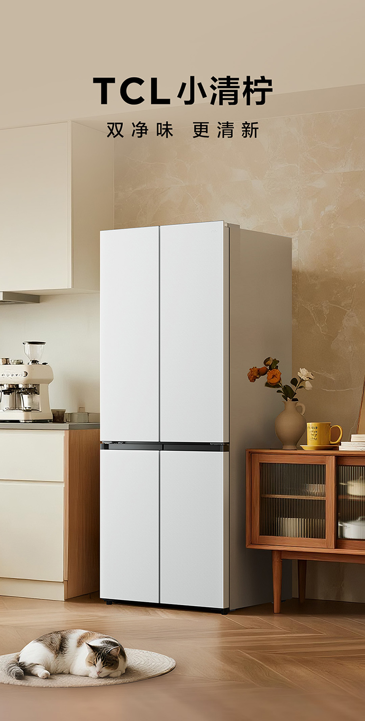 【新品上市】TCL 小清柠480升十字对开四开门超窄小户型大容量双净味深冷速冻电冰箱 R480V7-U1